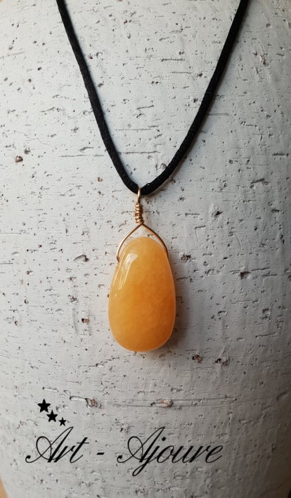 Handgemaakte Art-Ajoure goldfill hanger met gele Calciet van 4,5 cm lengte.