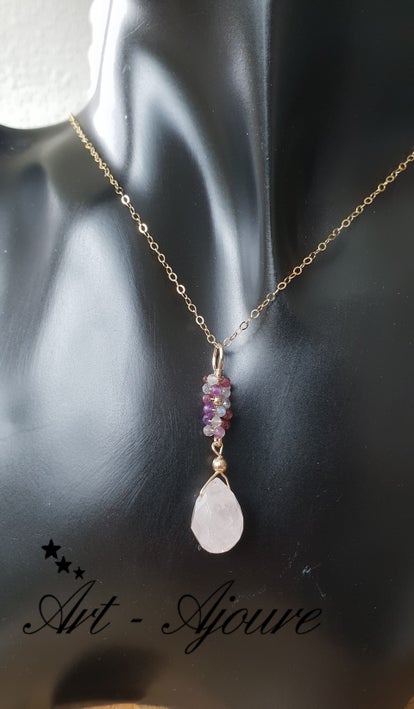 Handgemaakte Art-Ajoure 14k Gold fill hanger met Rozenkwarts,Labradoriet,Rhodoliet,Amethyst.