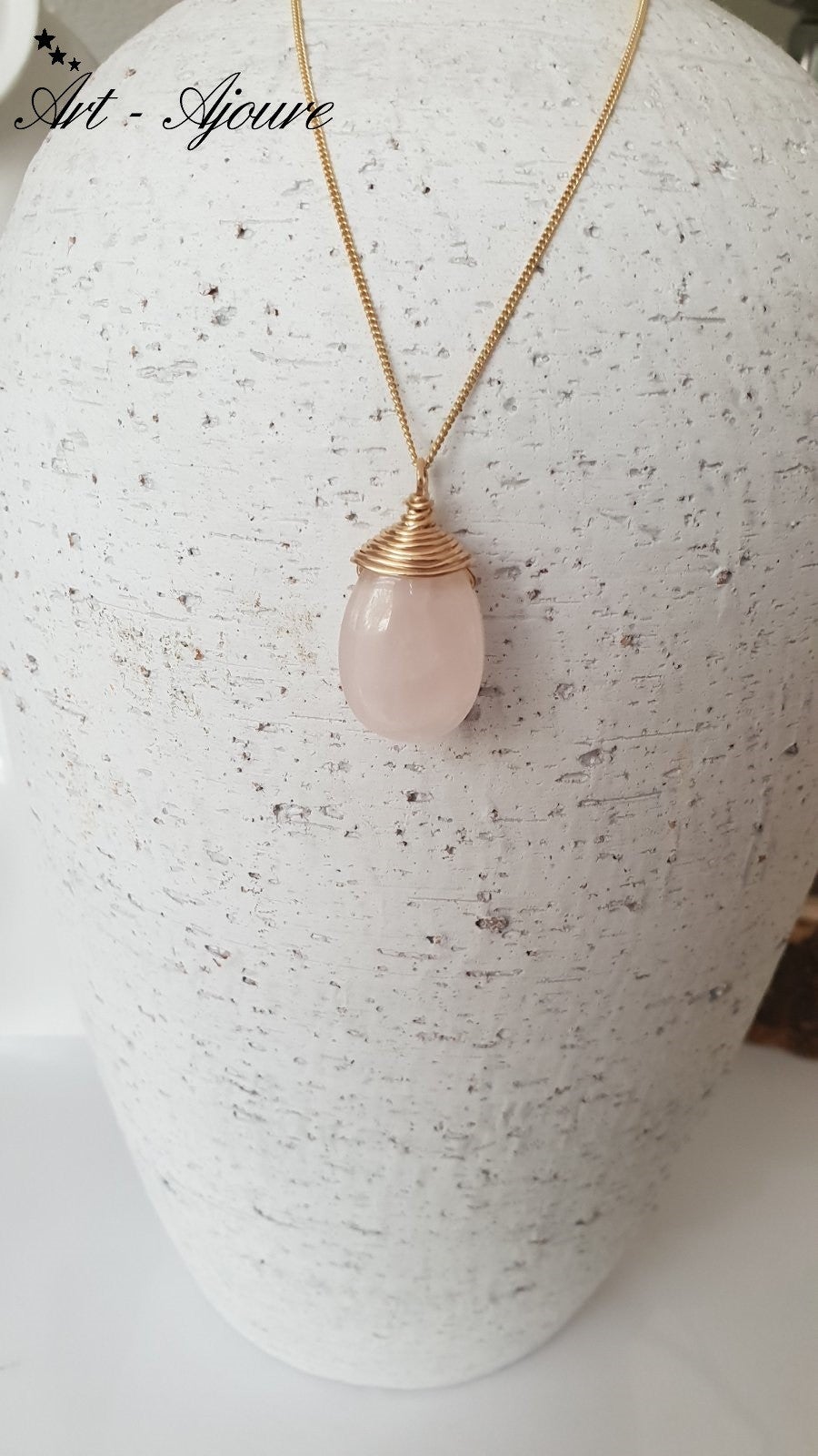 Dit hanger kan uitstekend gecombineerd worden met onze 14k goud goldfilled Art-Ajoure Rozenkwarts oorbellen en 14K Gold filled Art-Ajoure armband met een echte natuurlijke Rozenkwarts edelsteen.