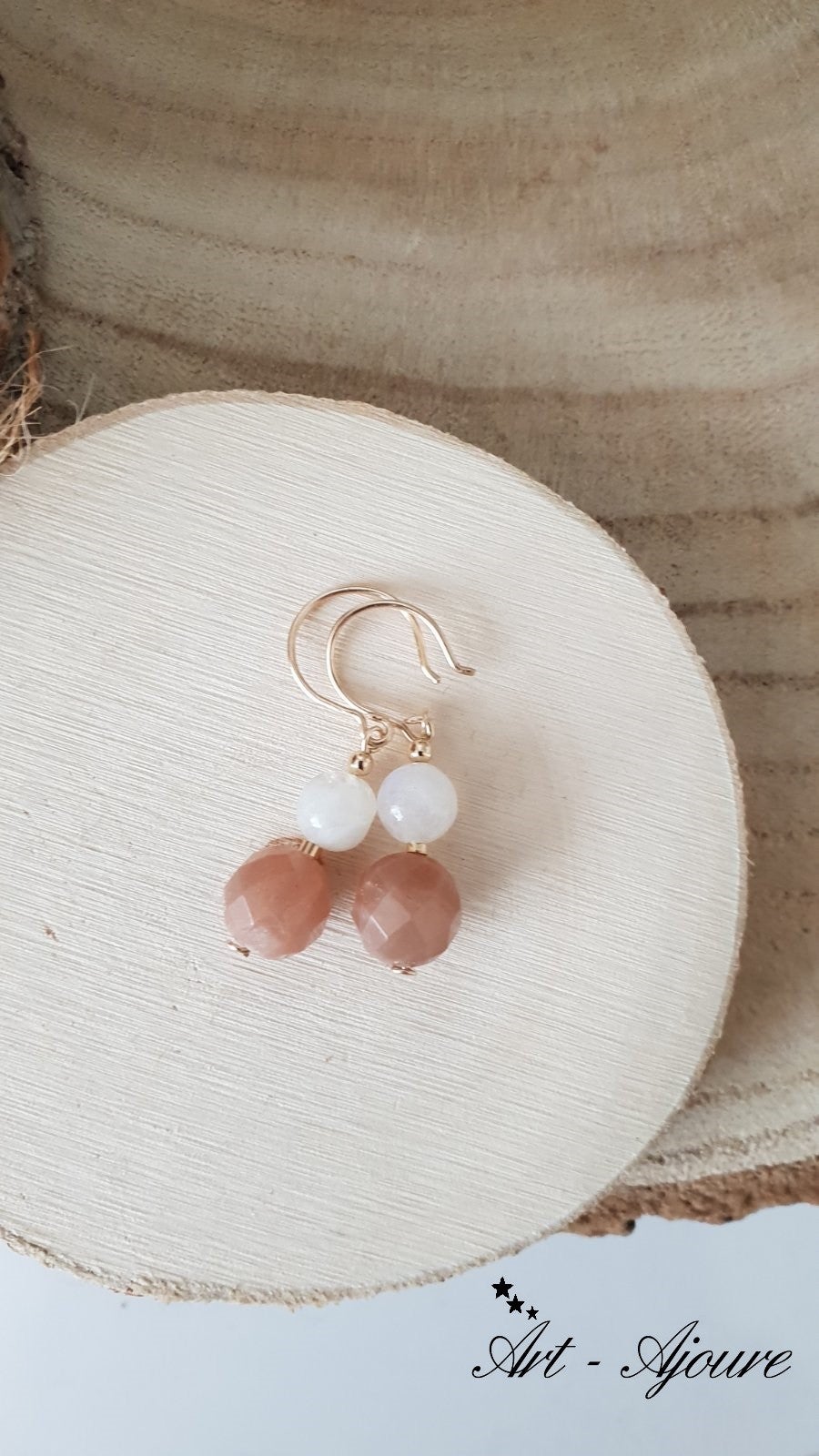 Art-Ajoure 14k goud gold filled handgemaakte oorbellen met Maanstenen .