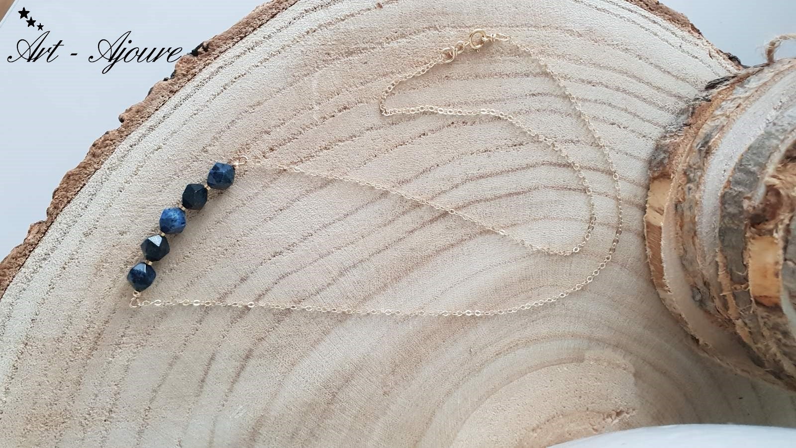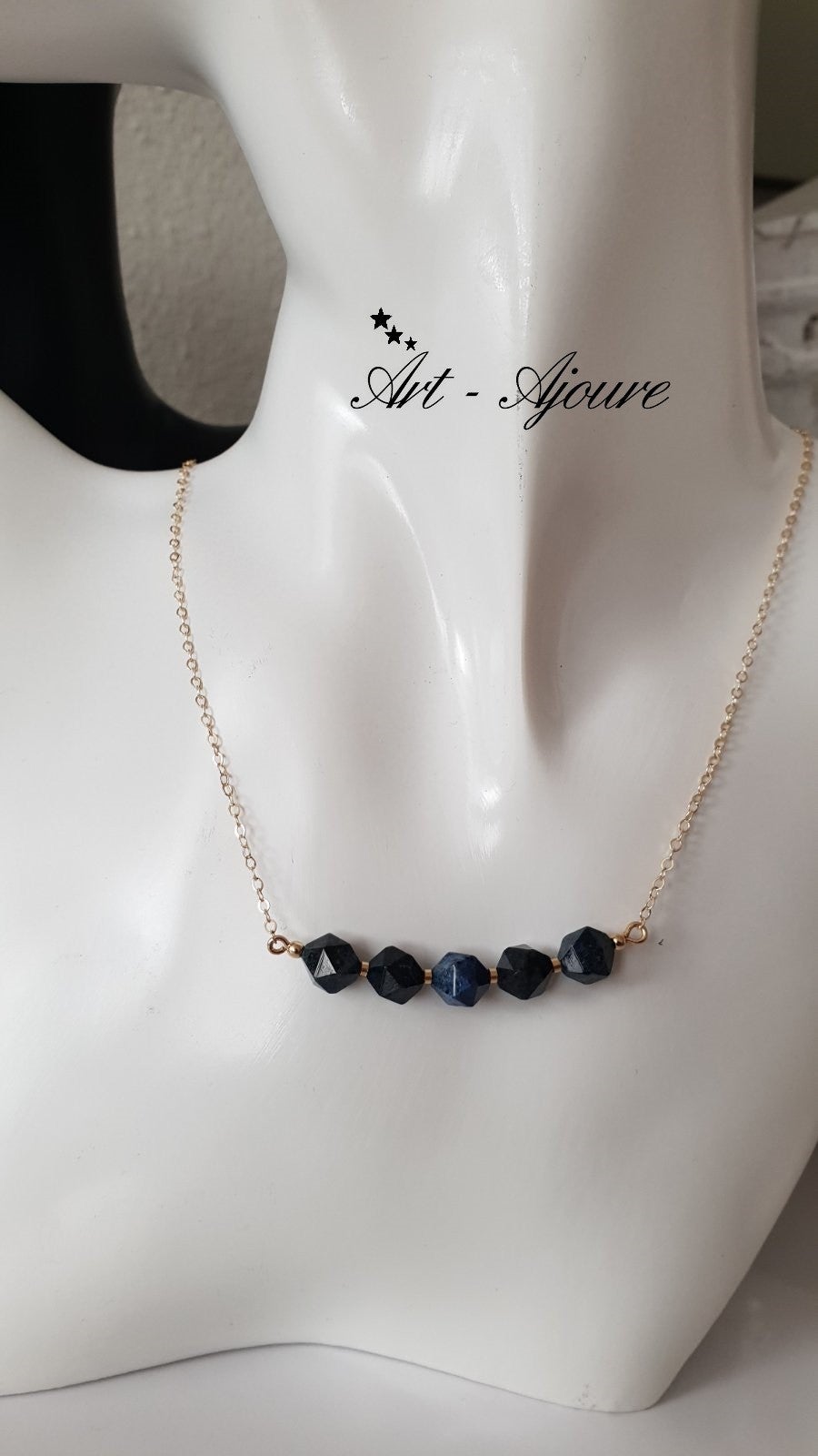 Handgemaakte 14k goldfill halsketting door Art-Ajoure met prachtige Dumortieriet edelstenen. Deze halsketting met een totale lengte van 47 cm en heeft 5 Dumortieriet edelstenen.