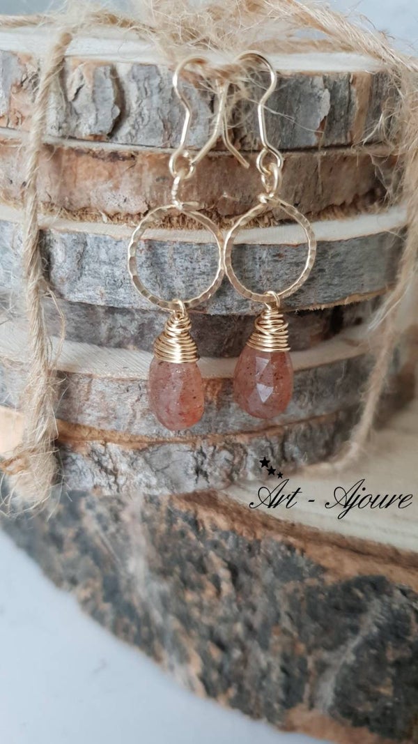 De oorbellen zijn van 14k gold filled oorhaken gemaakt met Aardbeikwarts facetgeslepen pegels met 14k gold filled draad .