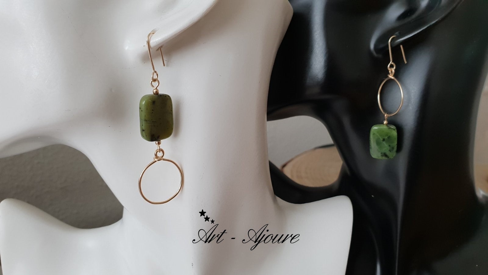 Art-Ajoure 14k Goldfill oorbellen met Jade Nefriet.