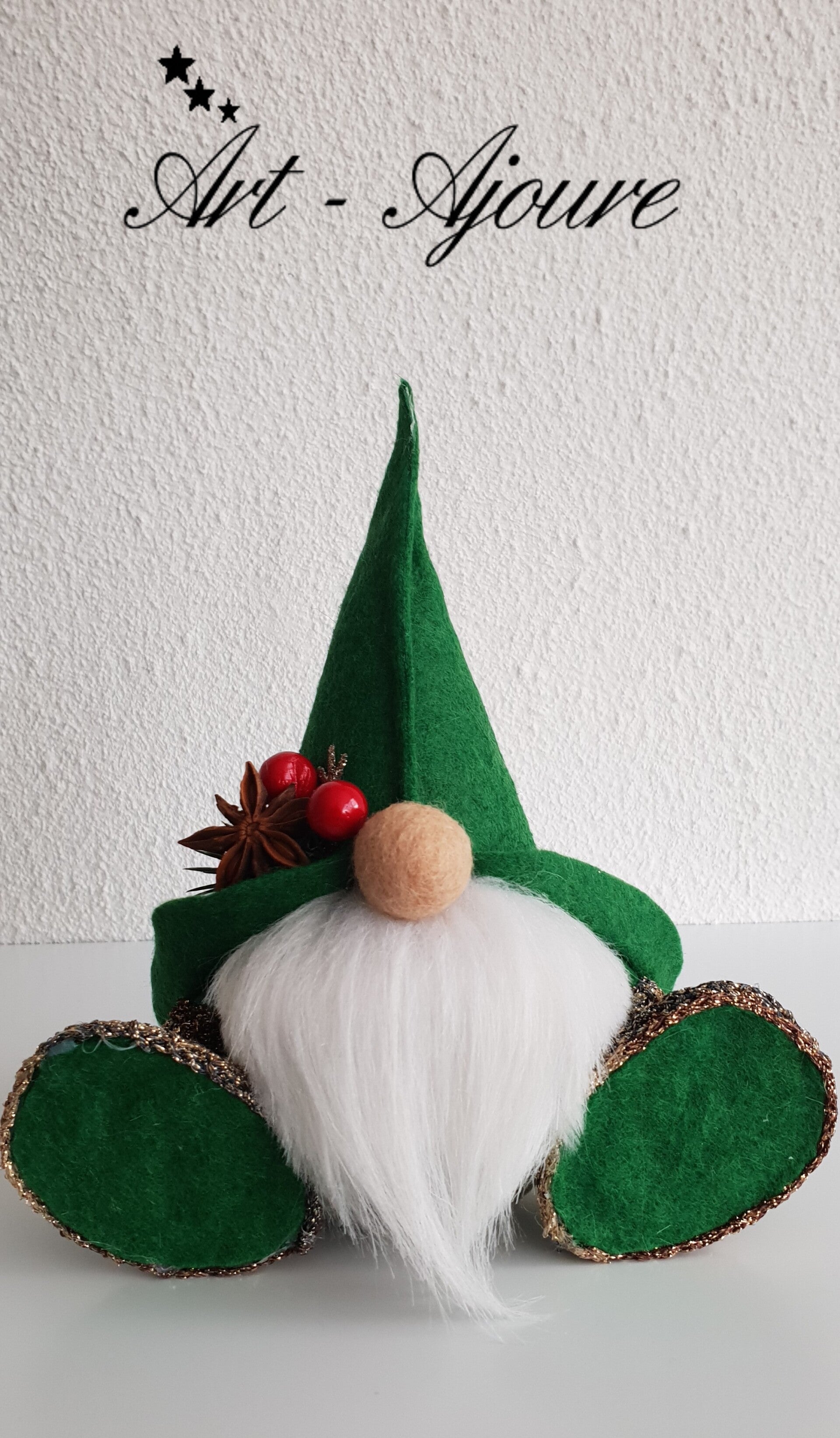 Art-Ajoure handgemaakte wollen Kerstkabouter 20 cm groen