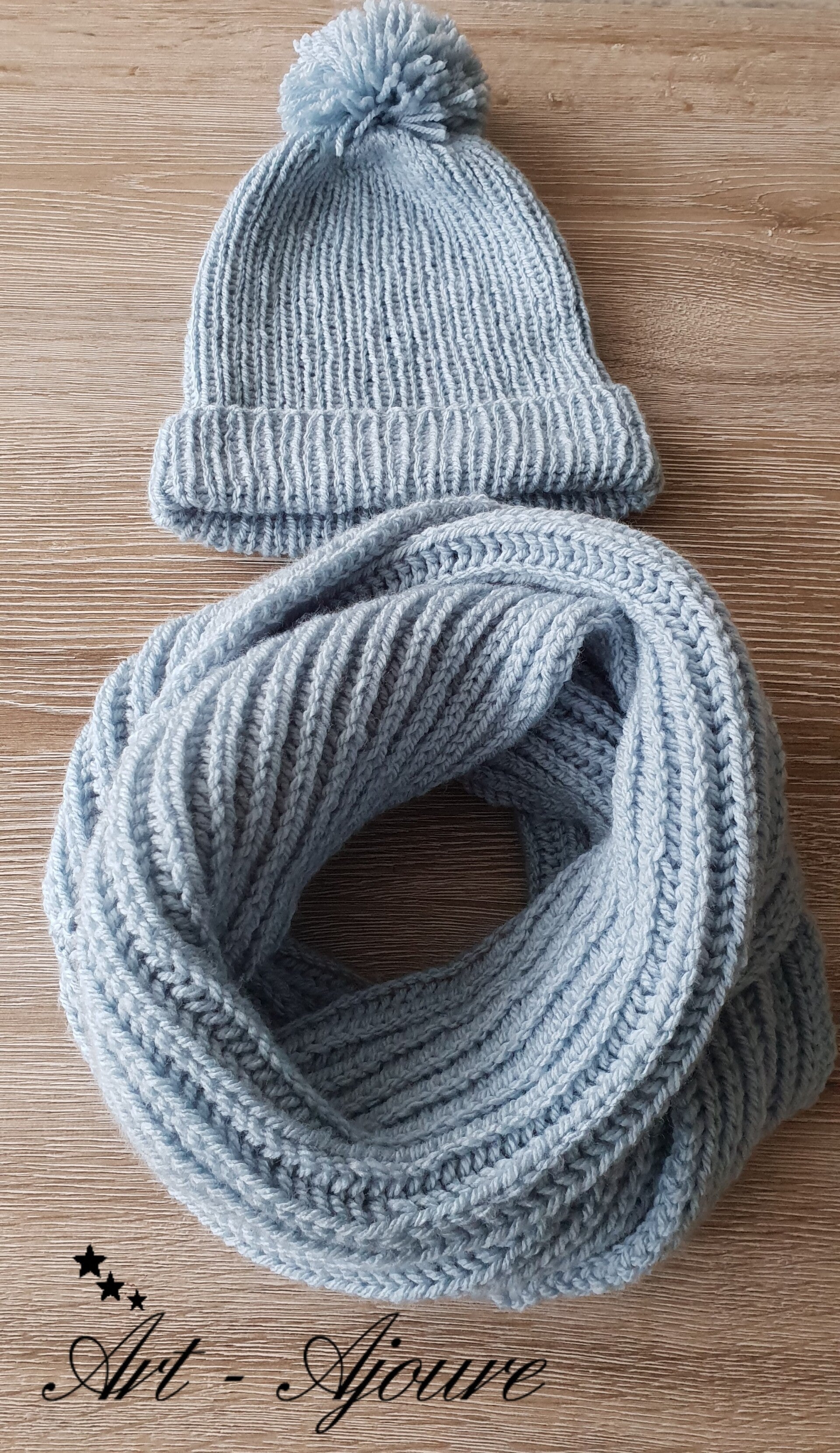 Art-Ajoure handgebreide muts en snood set.