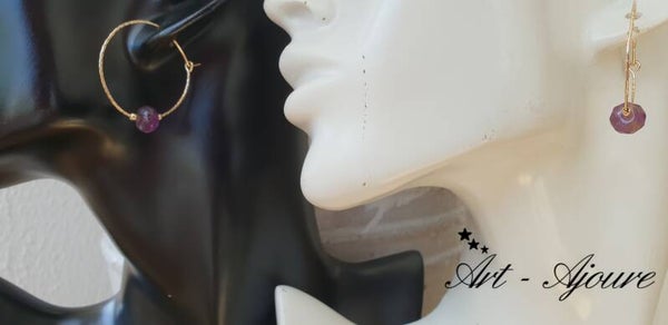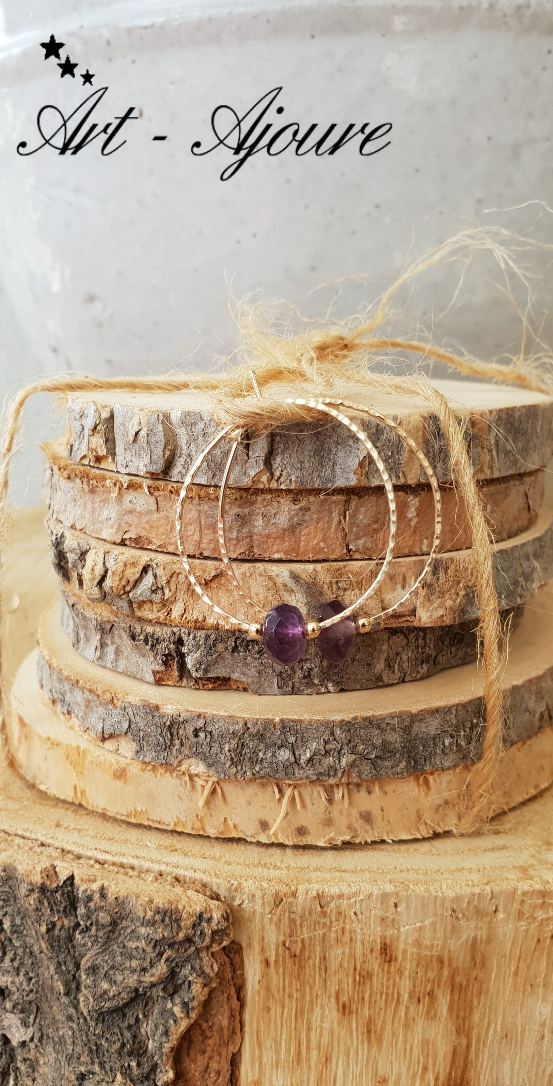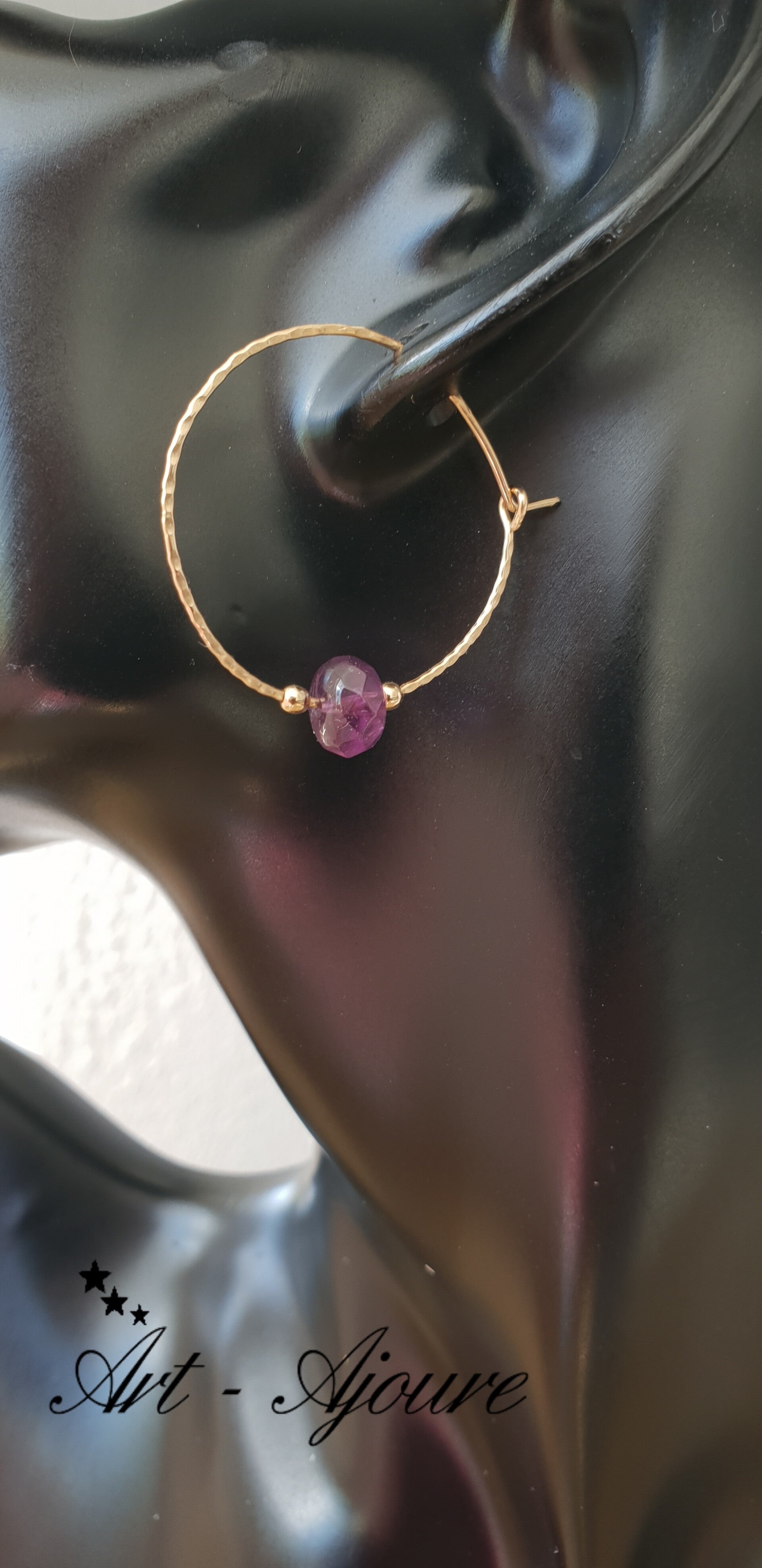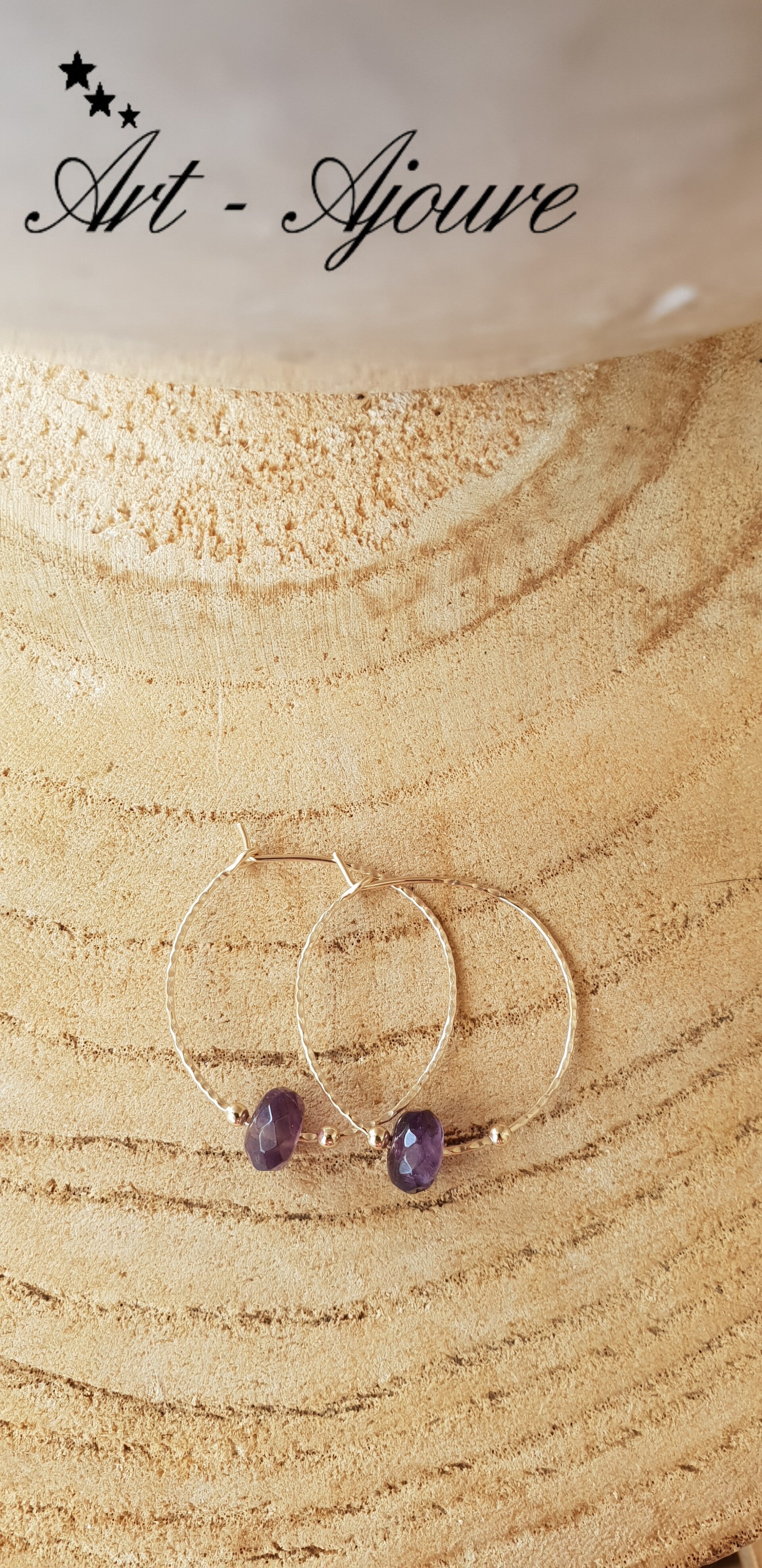Hand gemaakte Art-Ajoure 14k goud gold filled creolen met Amethyst stenen.