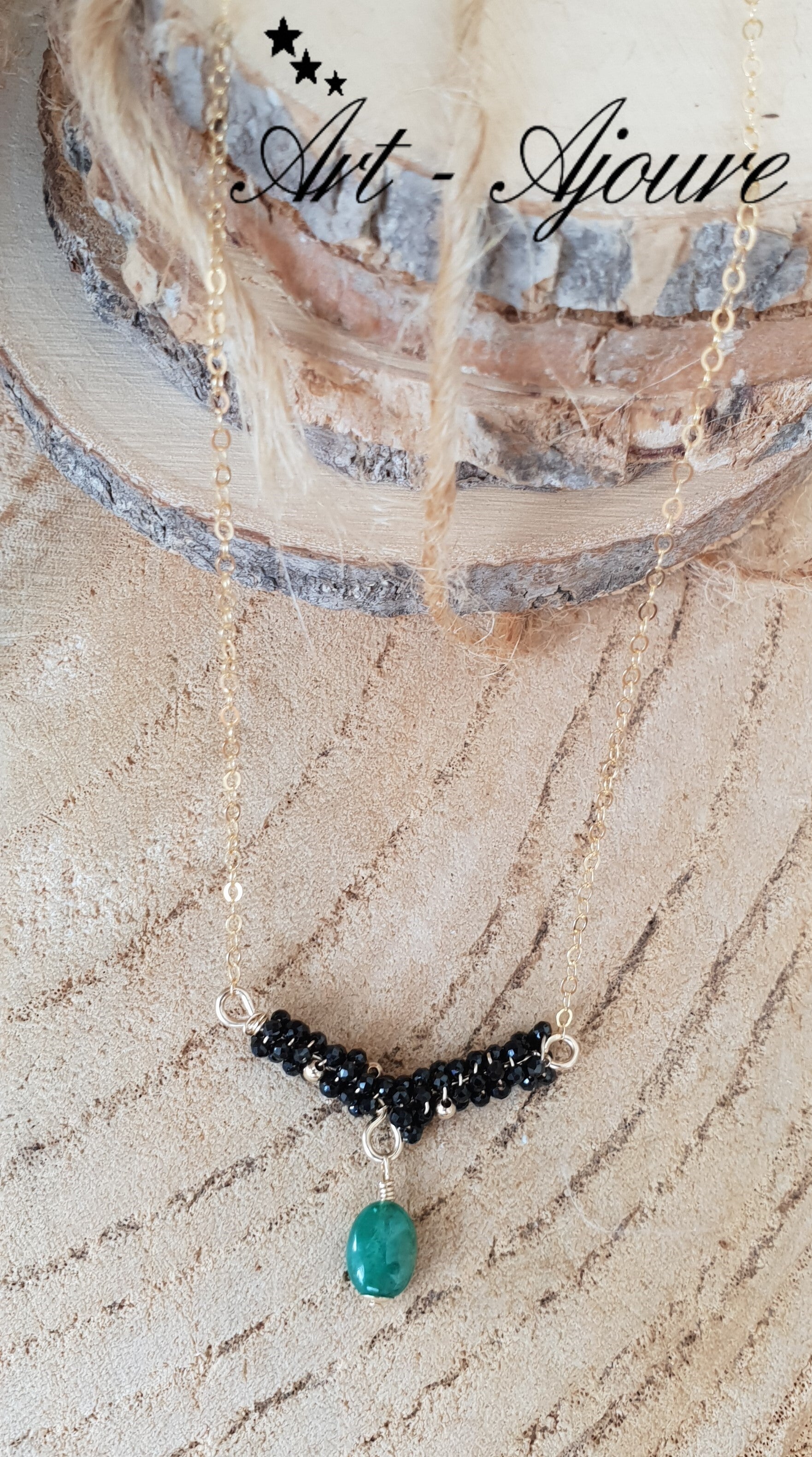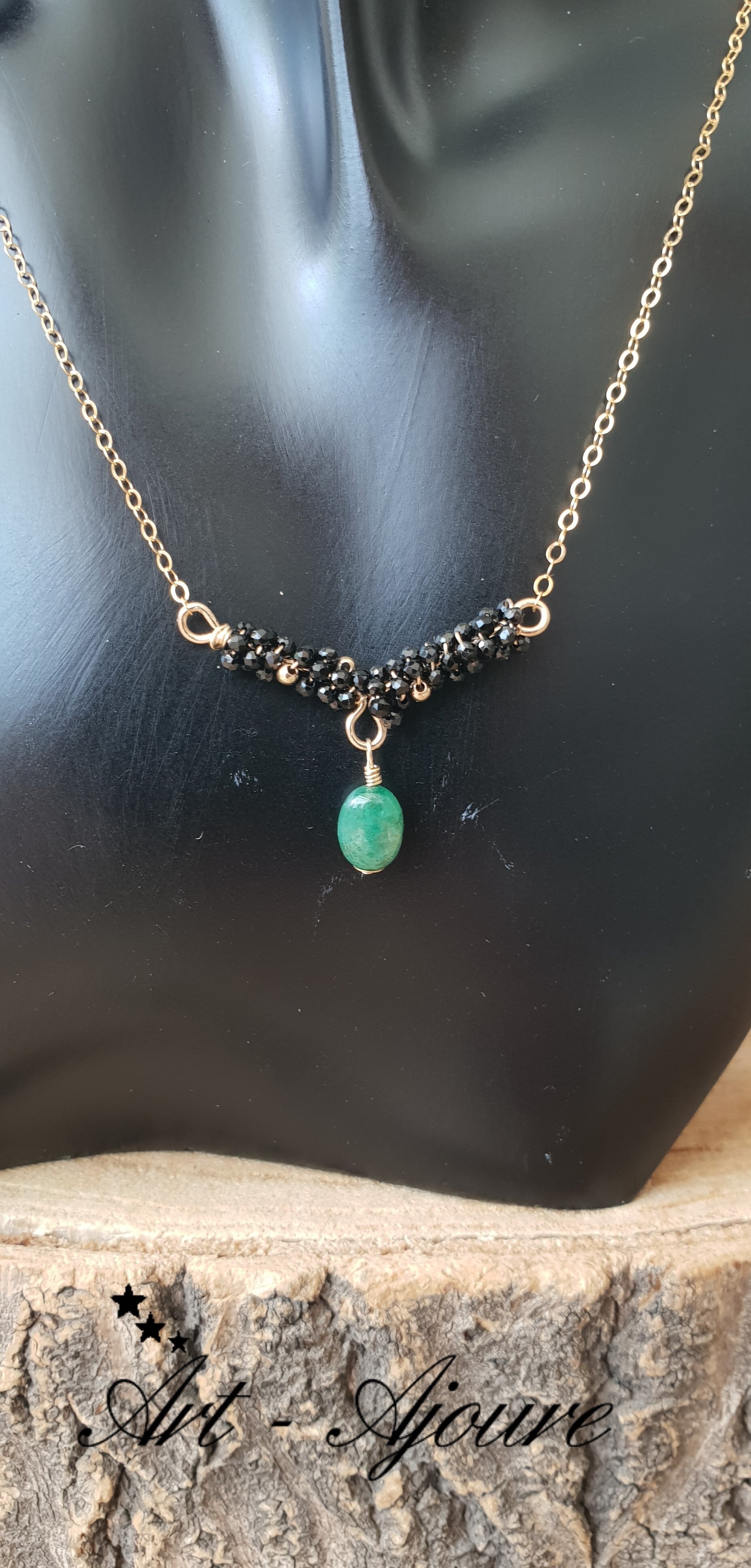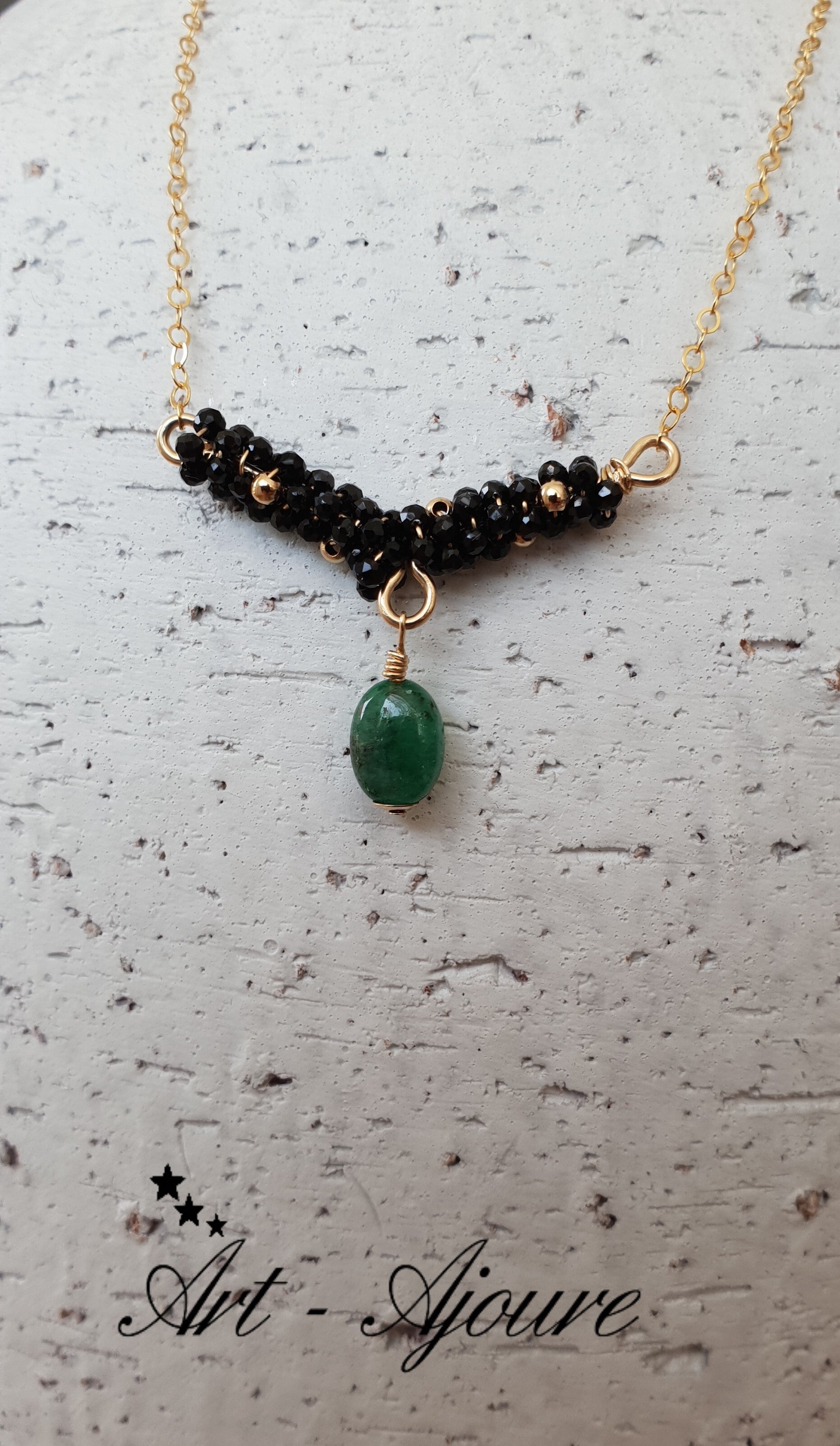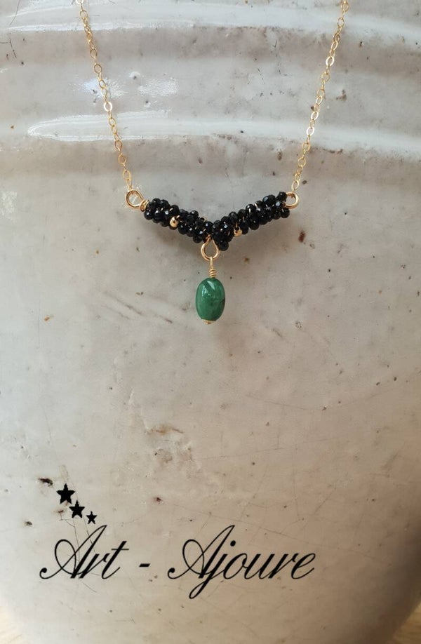 Hand gemaakte Art-Ajoure 14k Gold fill halsketting met Smaragd en Spinel hanger
