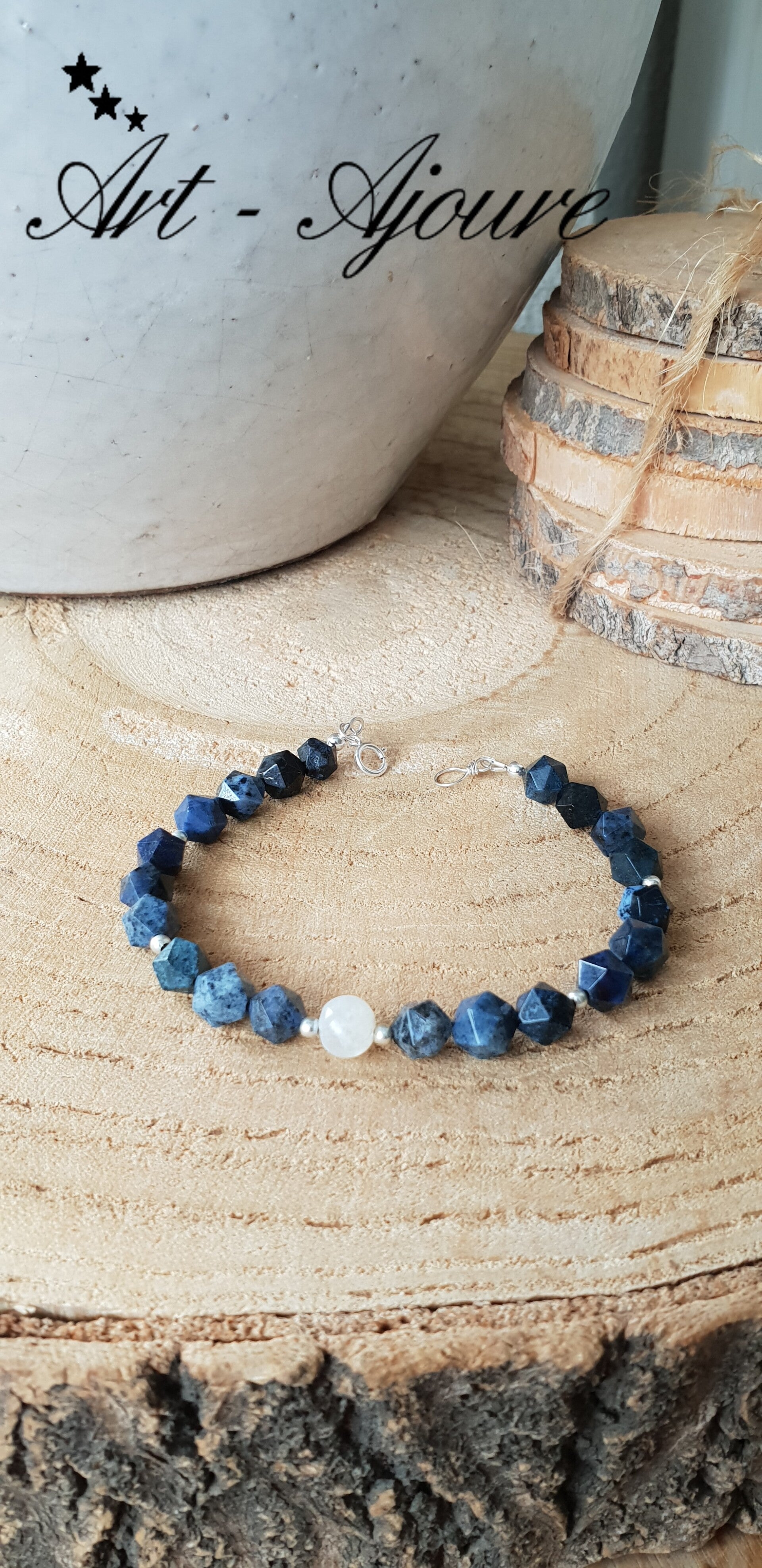 Deze armband is gemaakt van 925 zilver en natural BDumortieriet en Maansteen edelstenen.