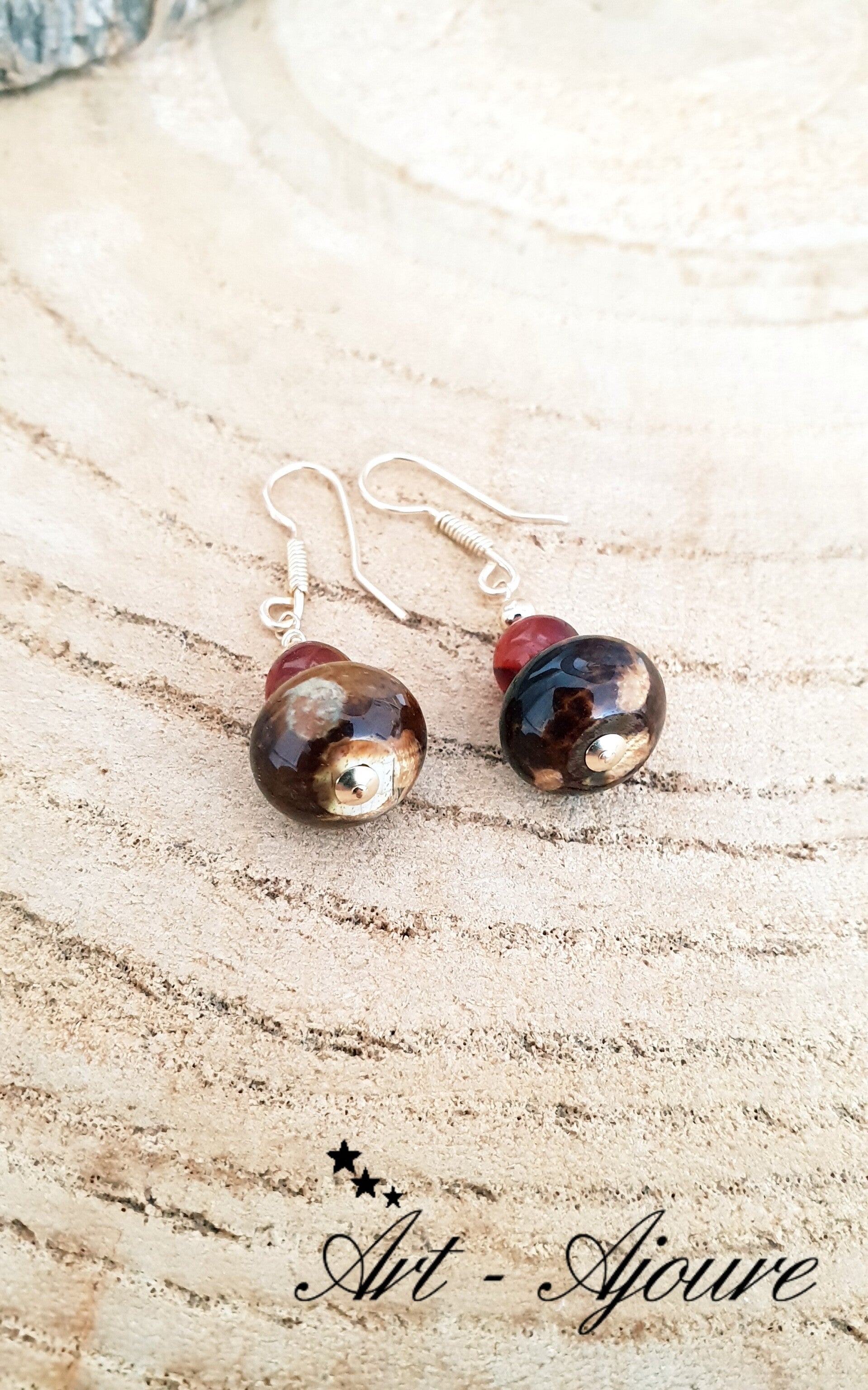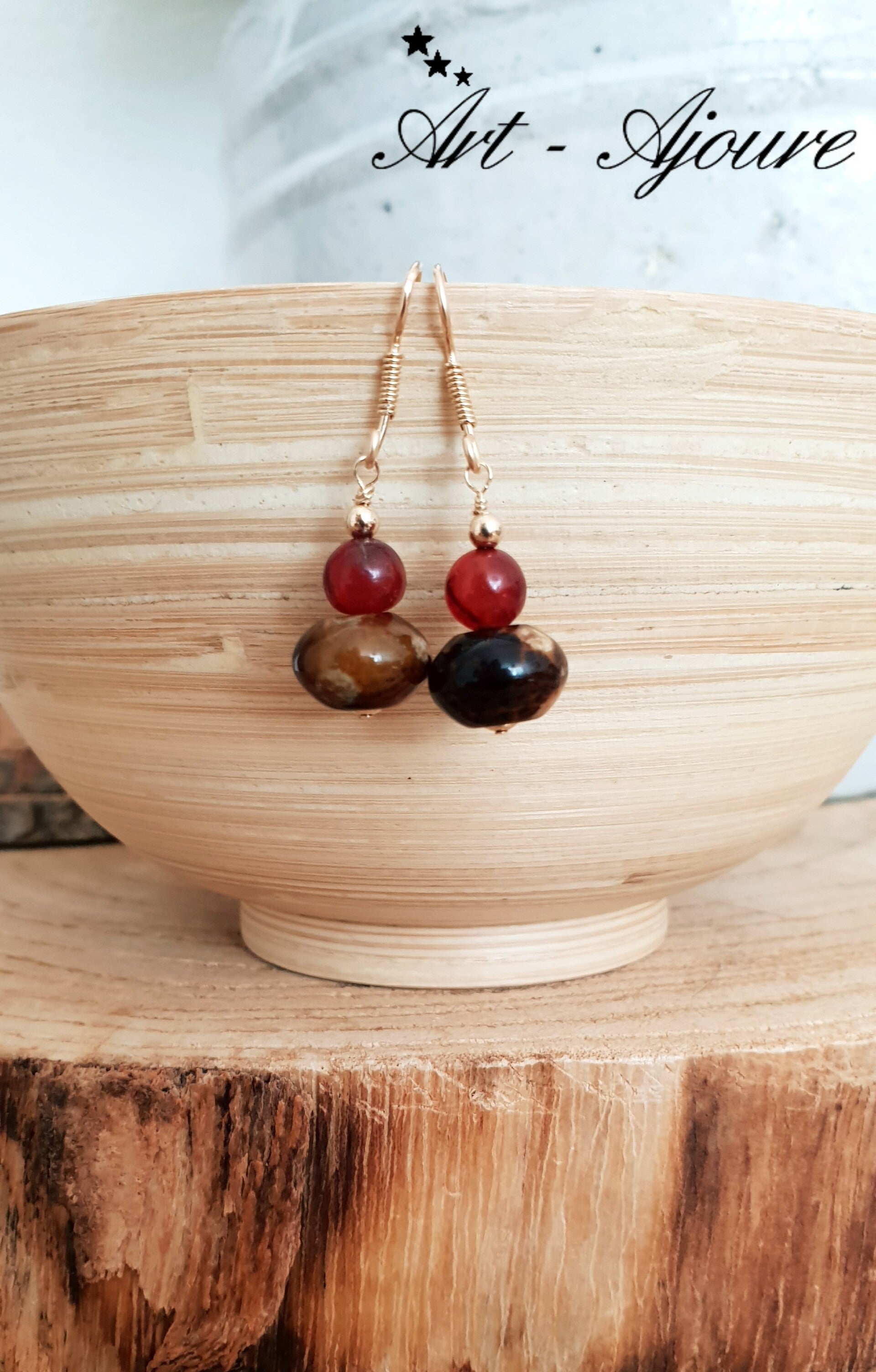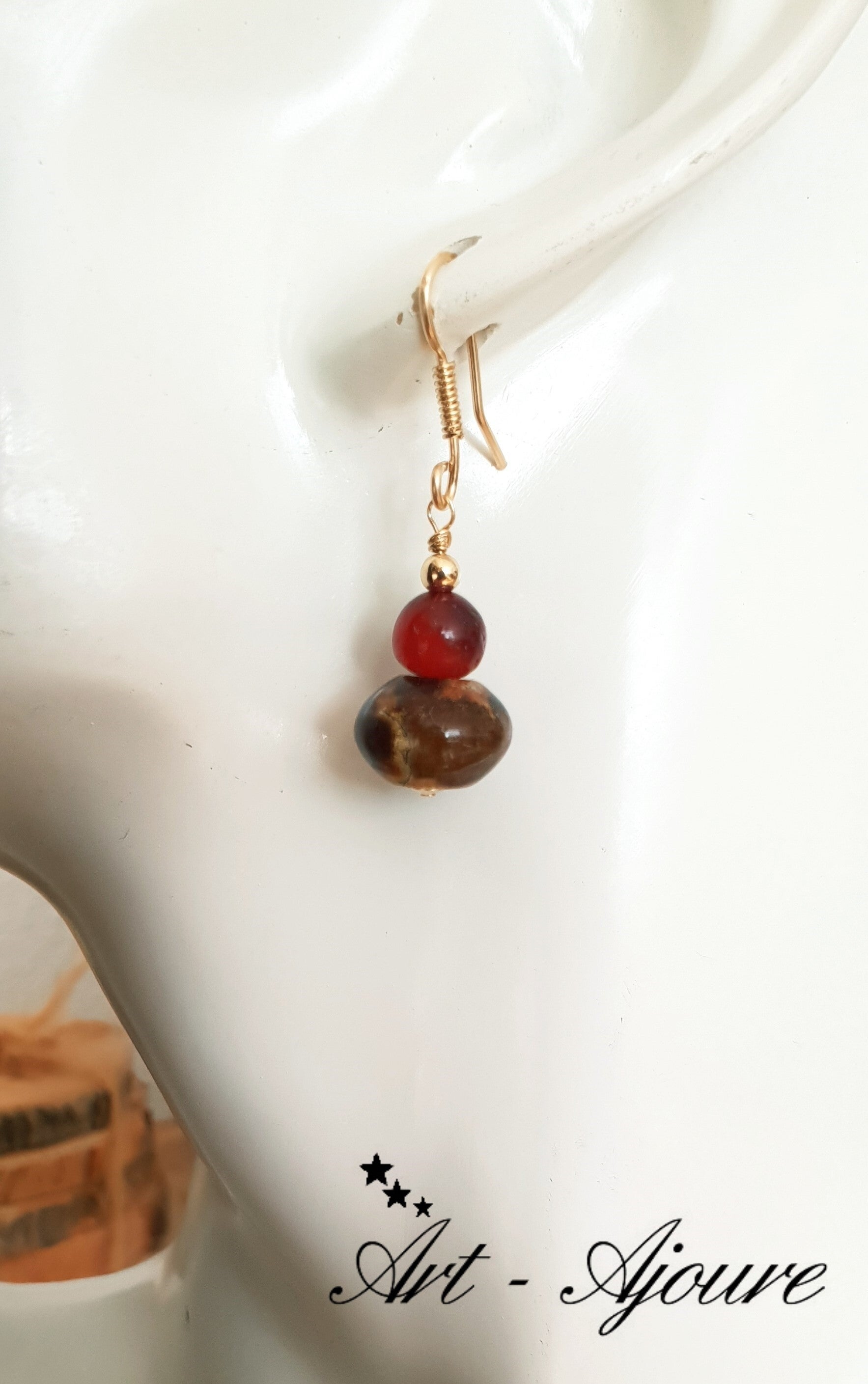 Art-Ajoure handgemaakte 14k Gold fill oorbellen met Carneool en Agaat