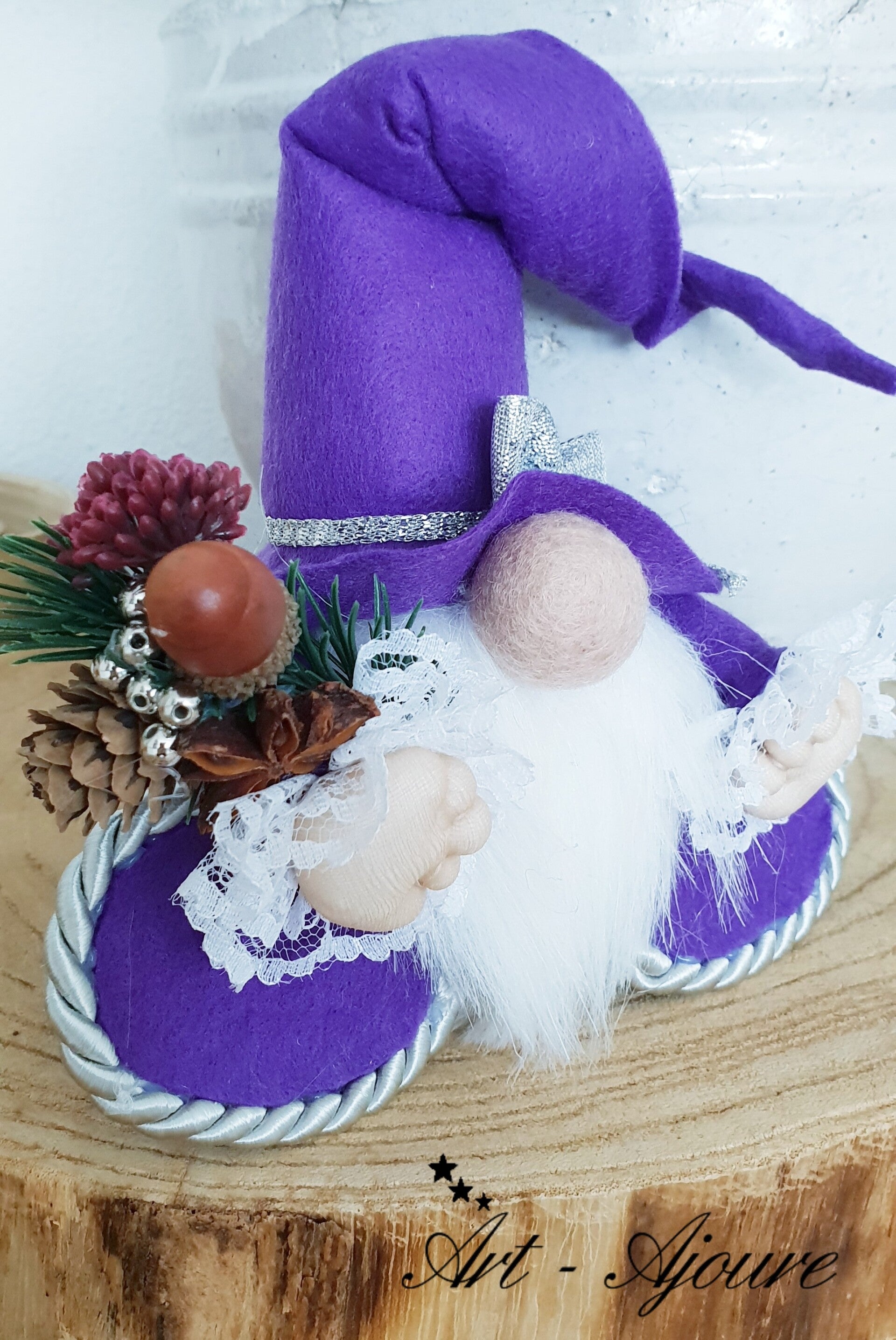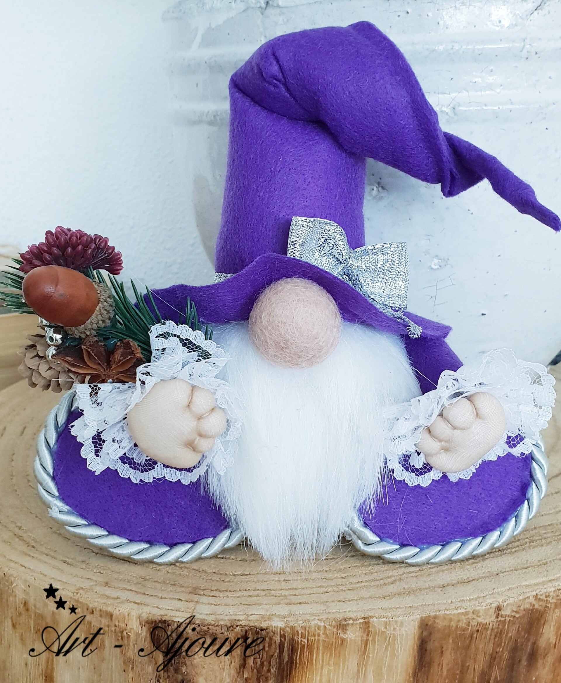 Art-Ajoure handgemaakte wollen Kerstkabouter 17 cm paars