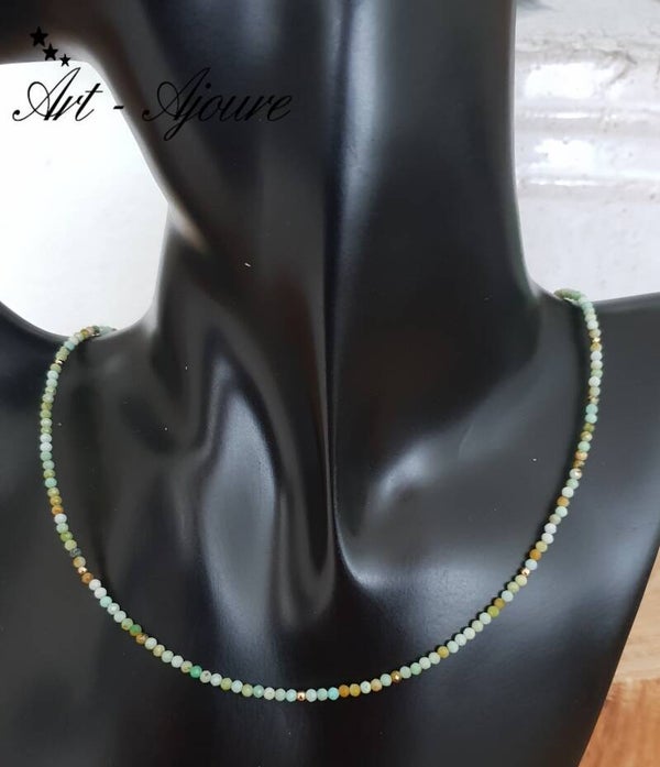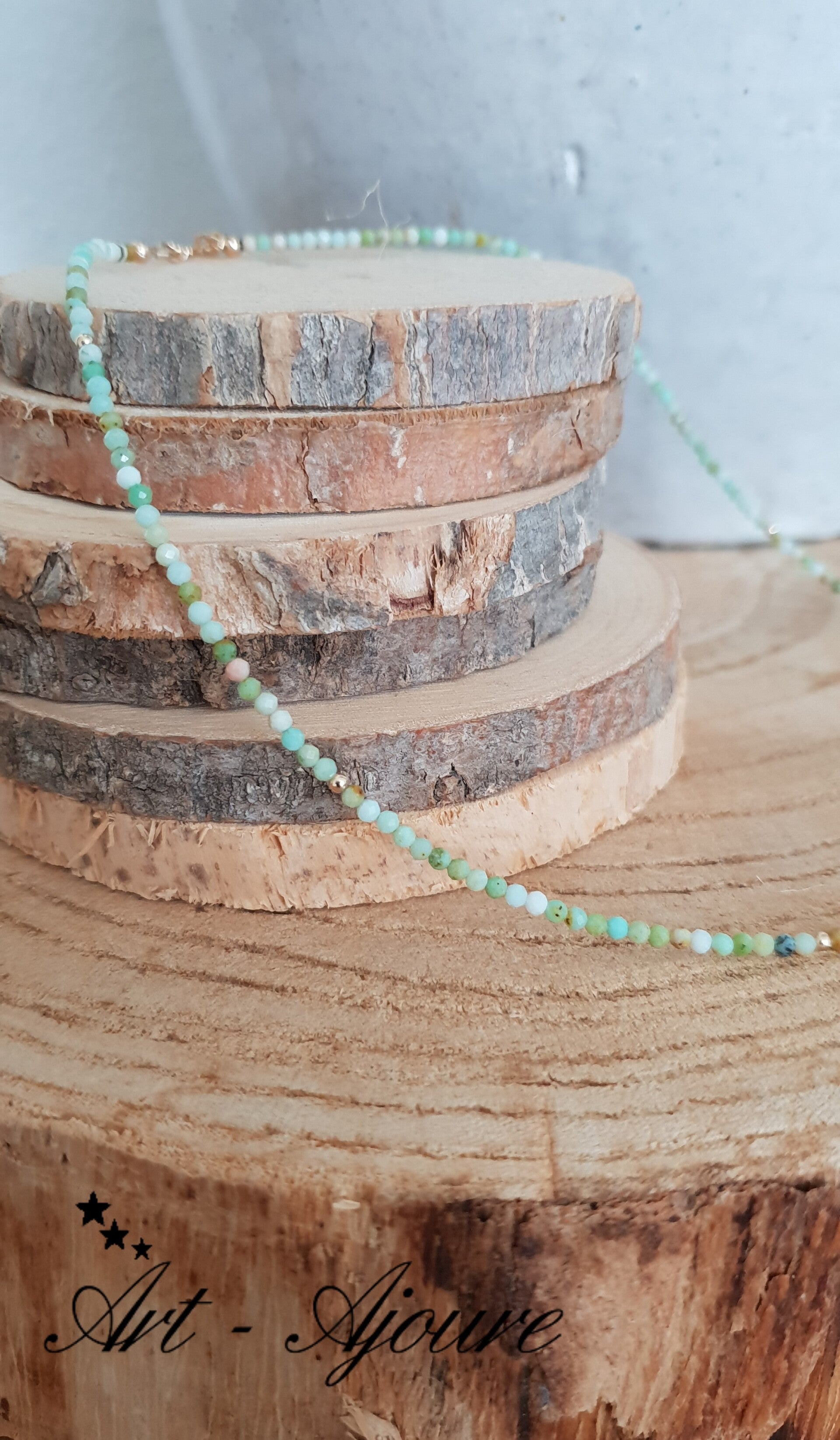 Handgemaakte 14k Gold fill halsketting met Chrysopraas edelstenen. Deze halsketting met een totale lengte van 46 cm mooie microfacetgeslepen Chrysopraas stentjes .