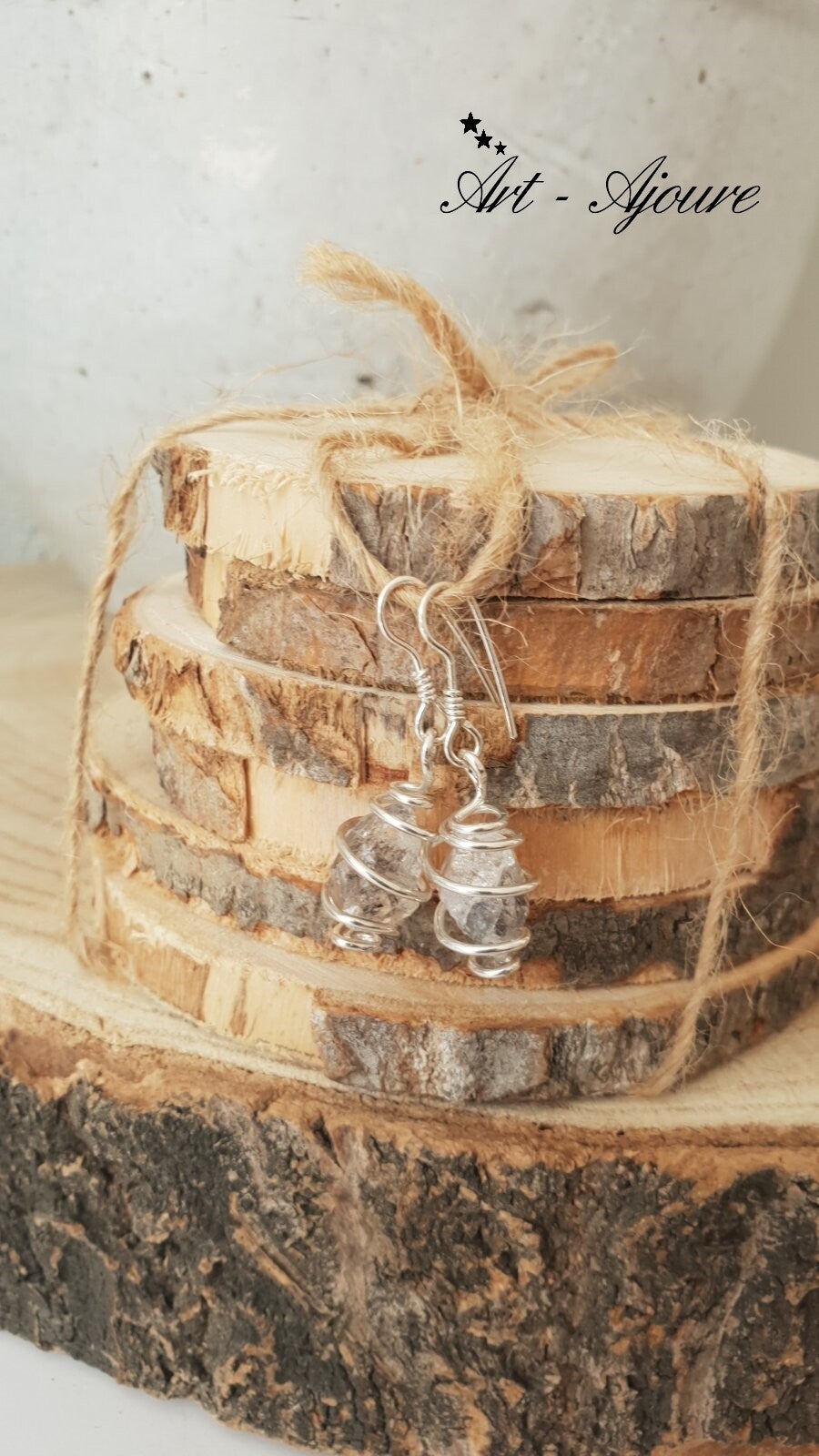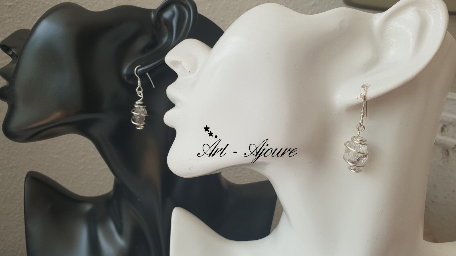 Hand gemaakte Art-Ajoure zilveren oorbellen met de mooie edelsteen Herkimer Diamant.