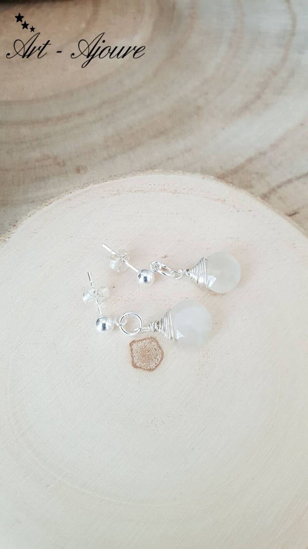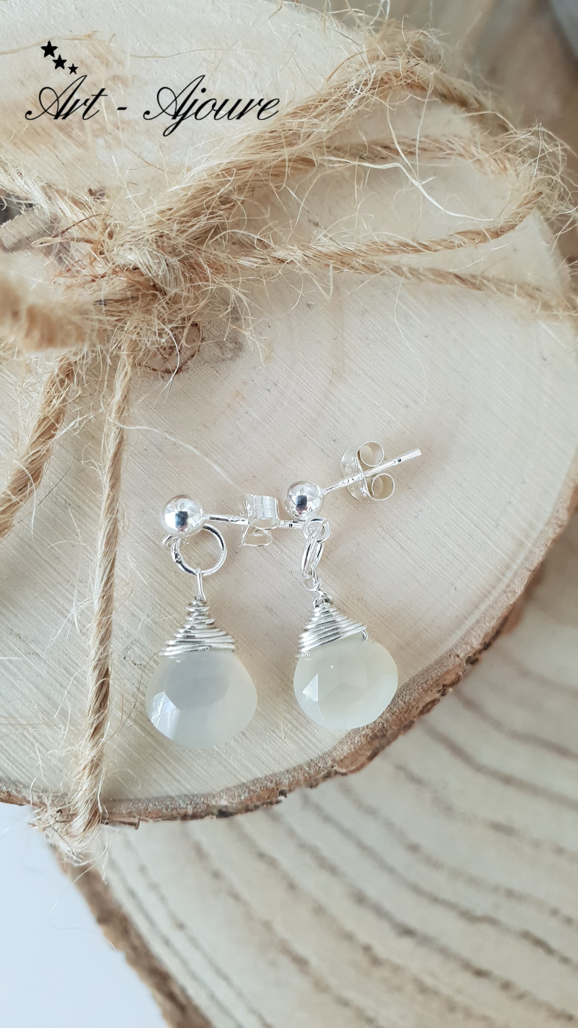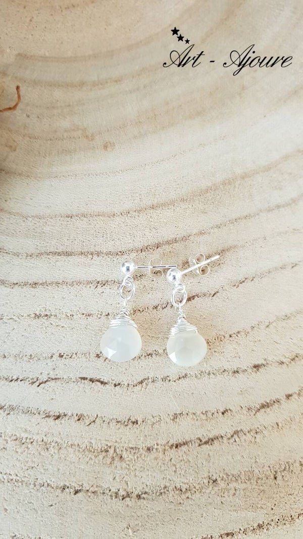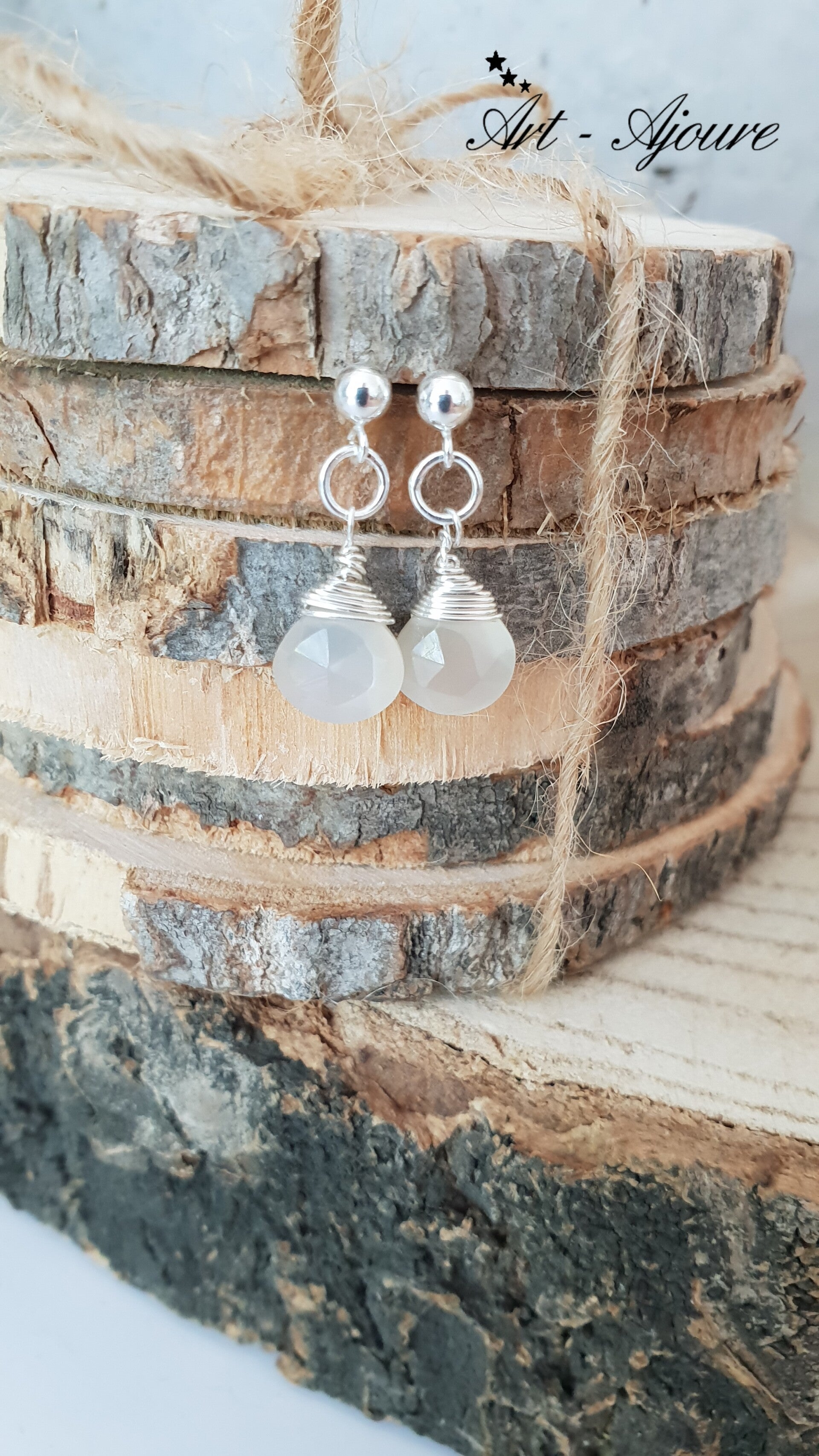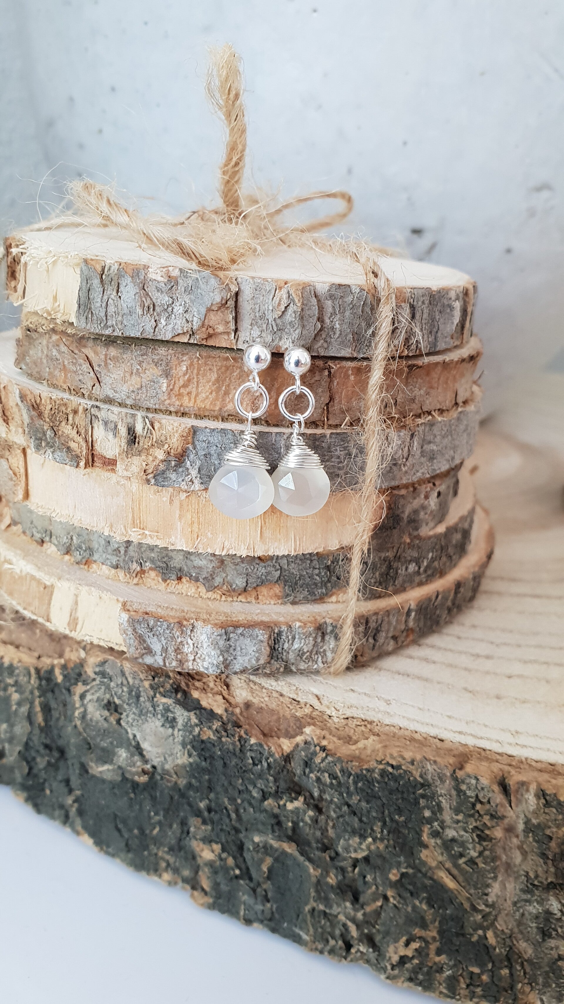 De oorknoppen zijn van 4mm kogels 925 zilveren oorstekers gemaakt met Maansteen facetgeslepen pegels.