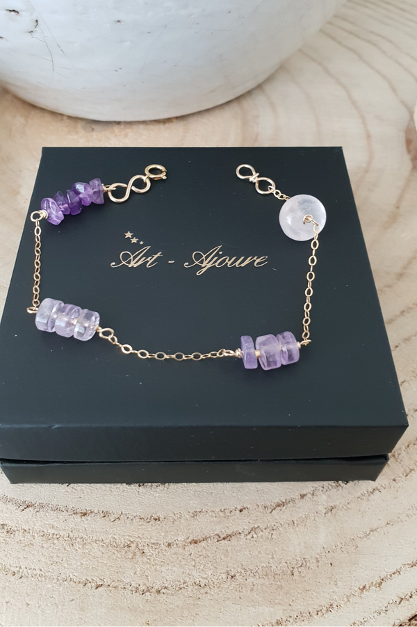 Art-Ajoure 14k Gold fill armband met Amethyst ,Ametrien en Rozenkwarts