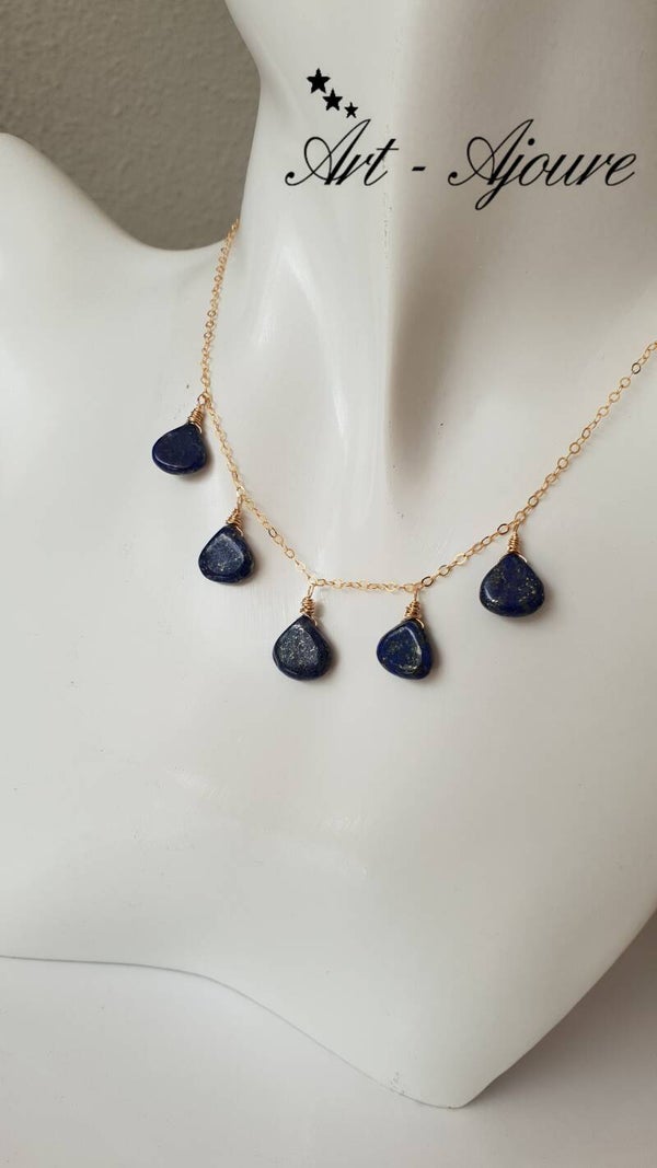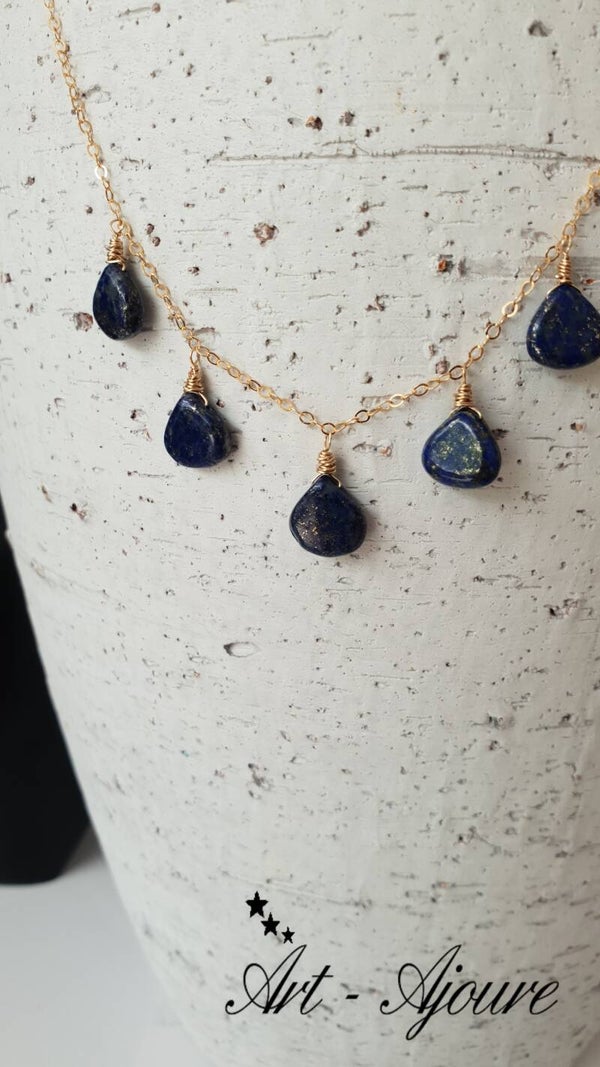 De halsketting en hanger zijn van 14k gold filled gemaakt met naturel Lapis lazuli pegels met 14k gold filled draad .