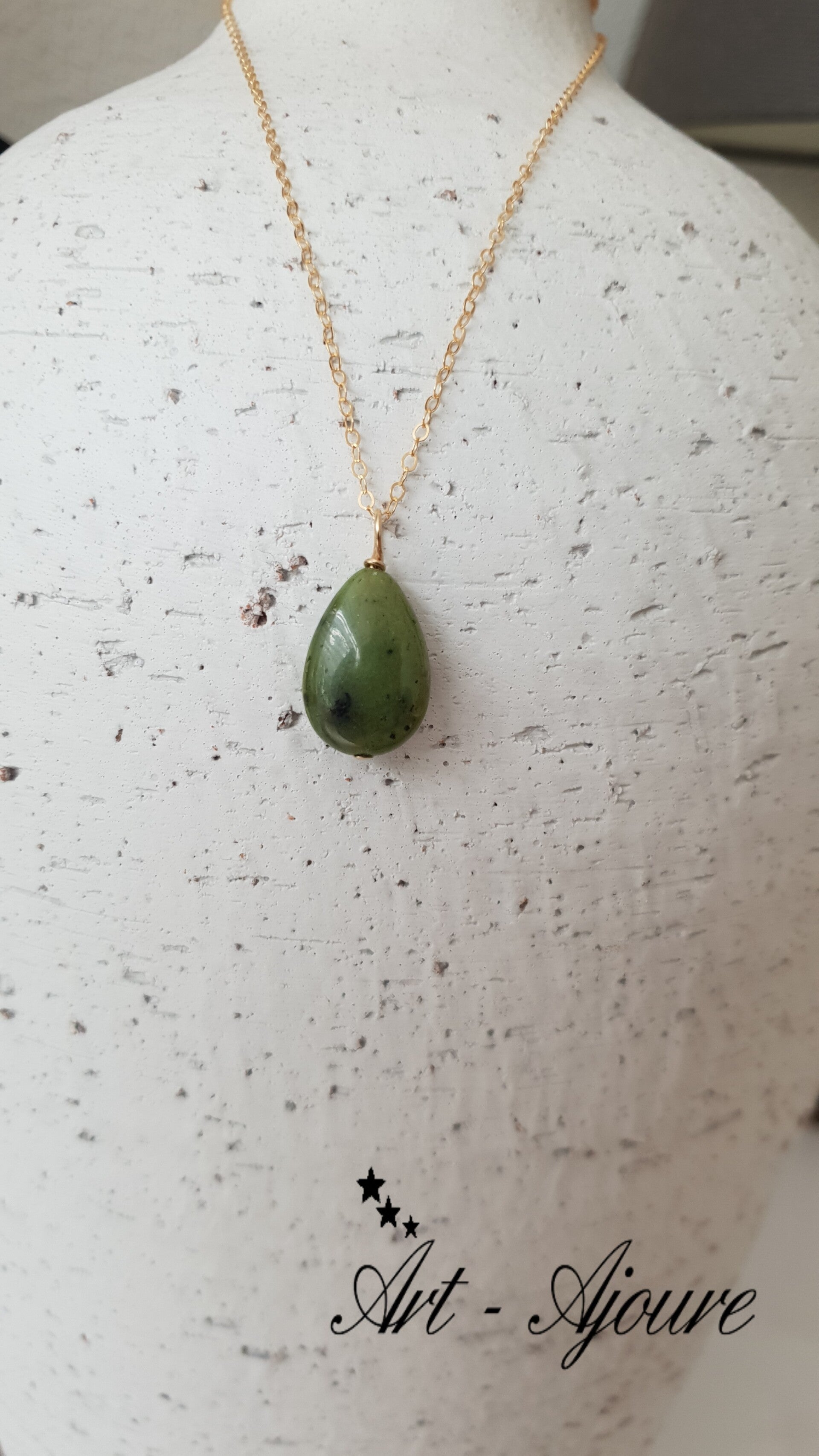 Art-Ajoure 14k Gold fill hanger met Jade.