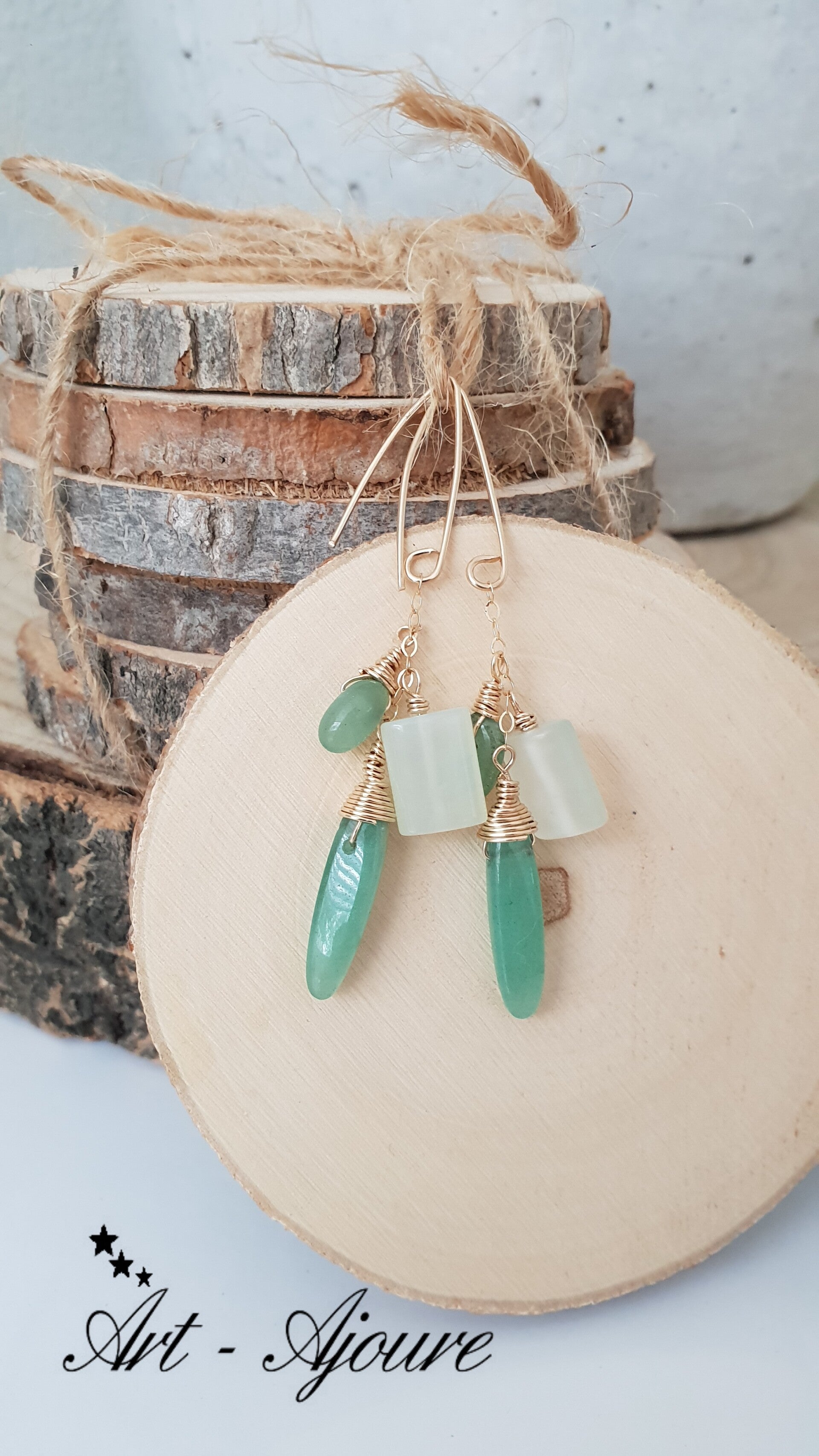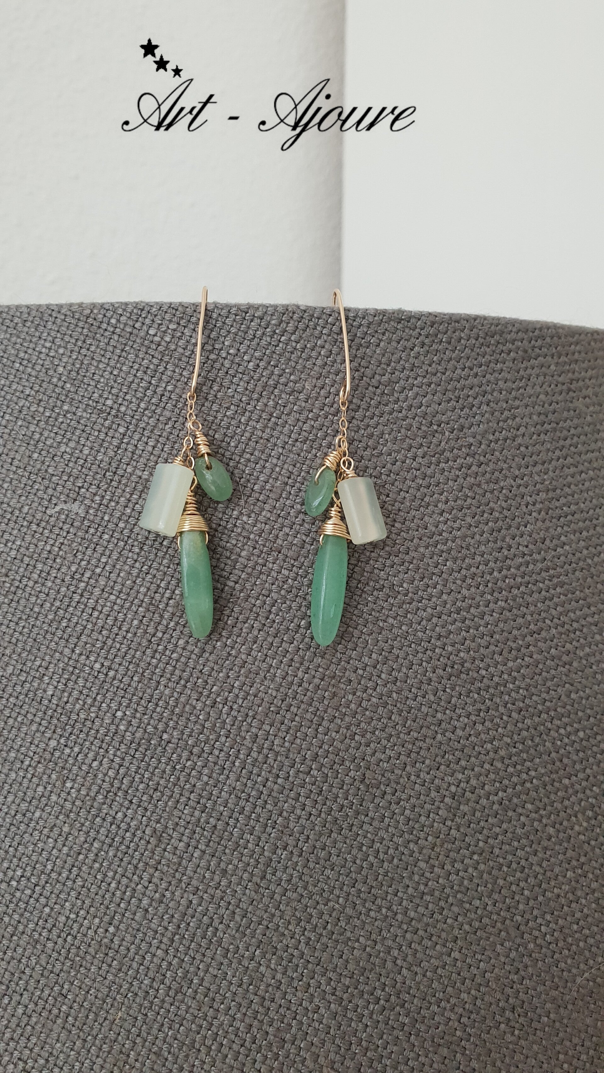 Art-Ajoure 14k Gold filled oorbellen met Aventurijn en Jade