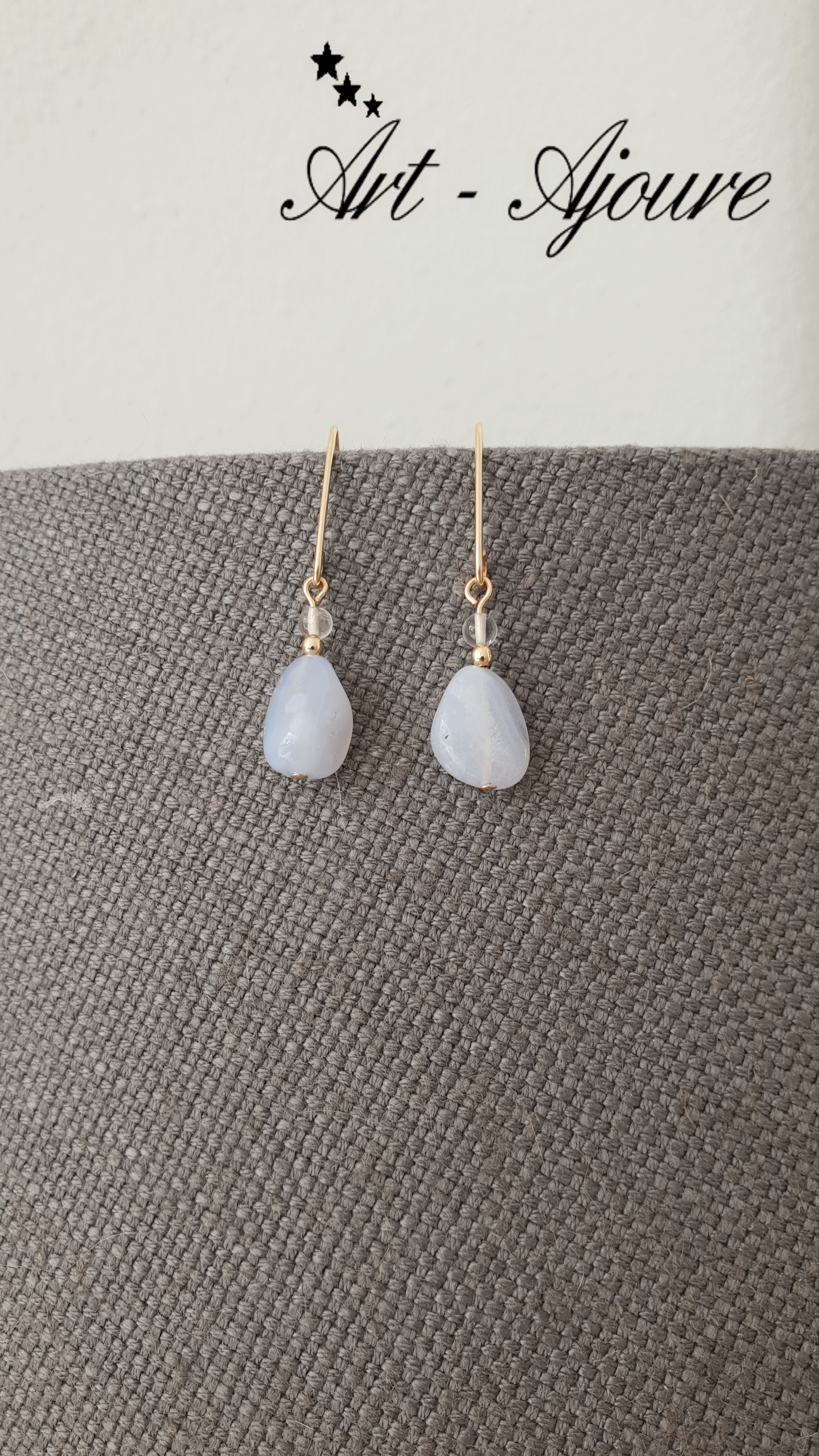 Art-Ajoure 14k Gold filled oorbellen met Chalcedoon en Bergkristal