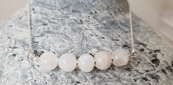- 5 Witte Maansteen steentjes van ongeveer 6 mm.