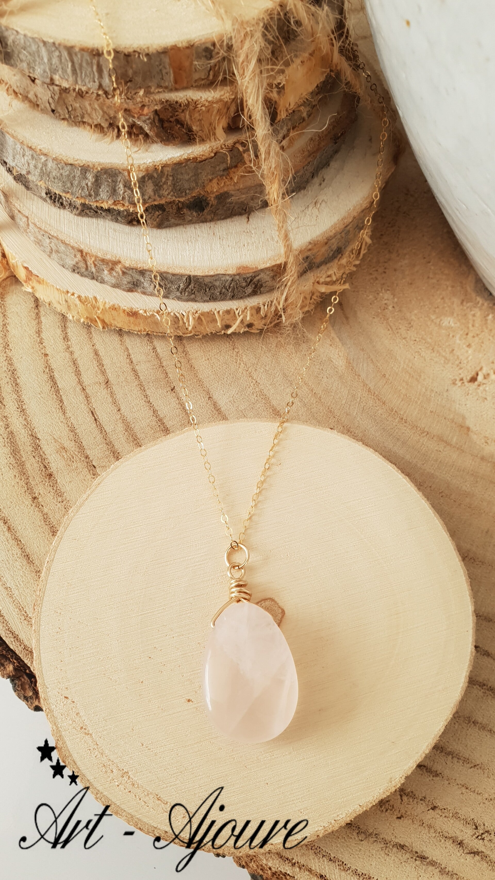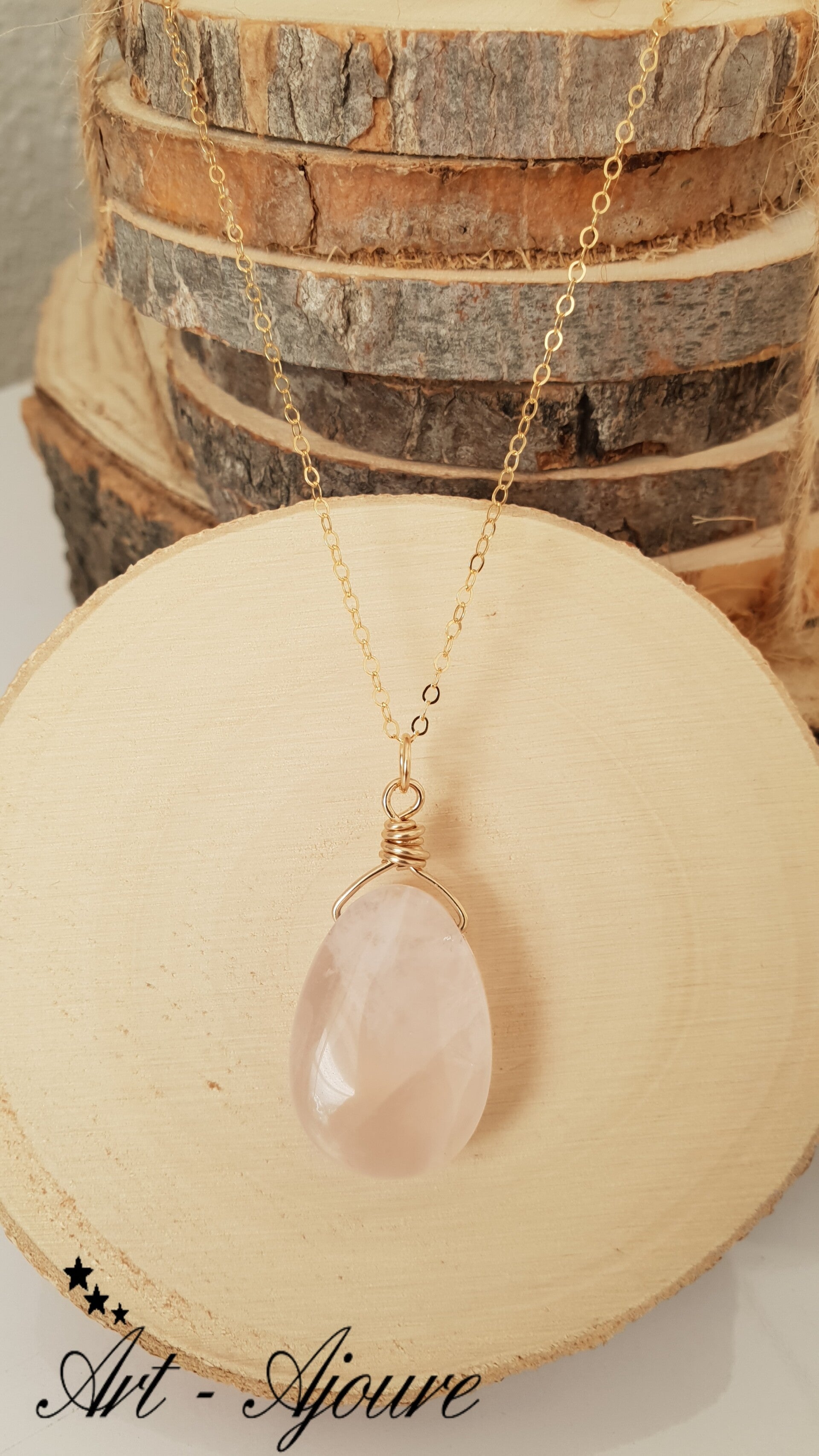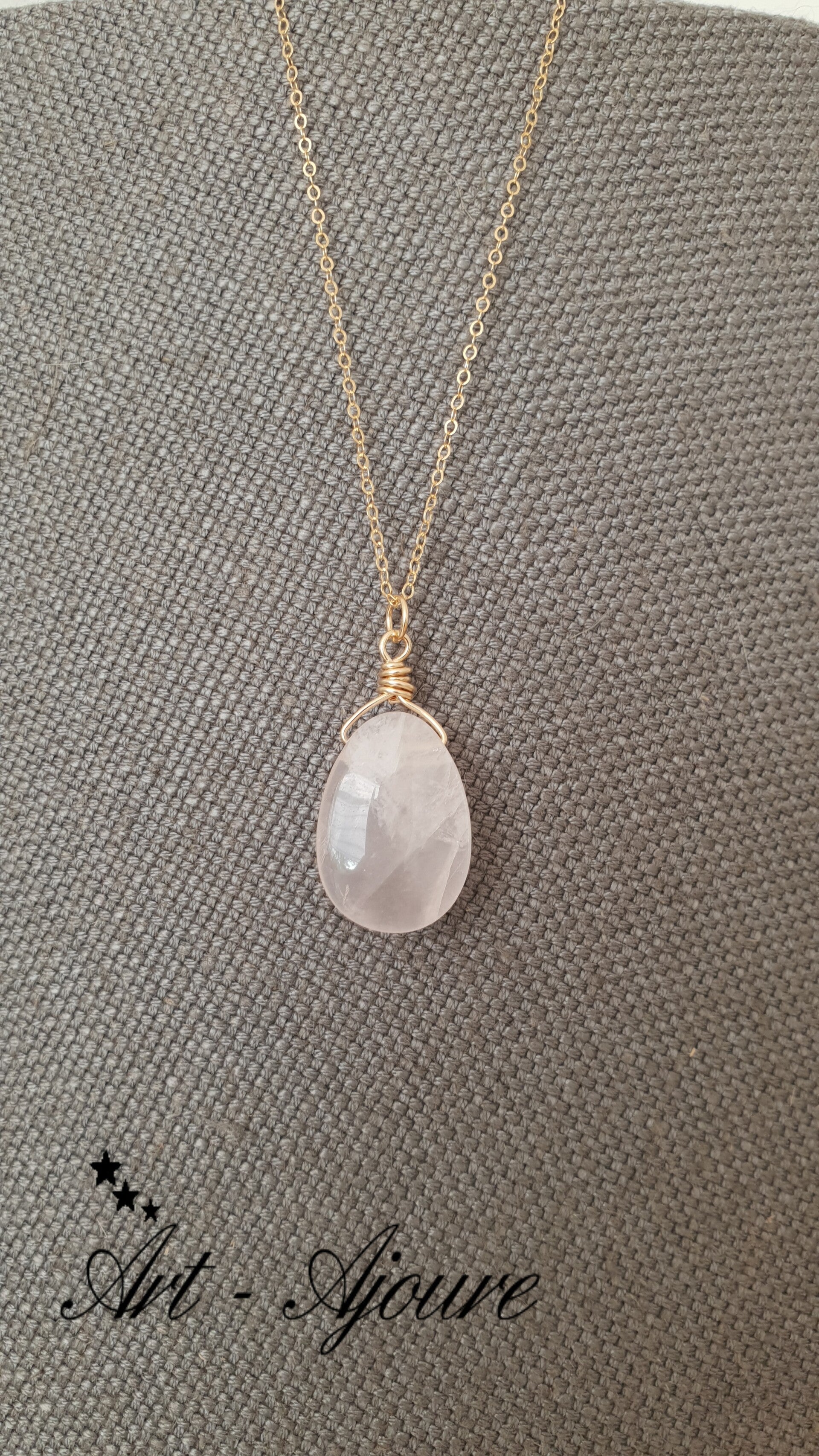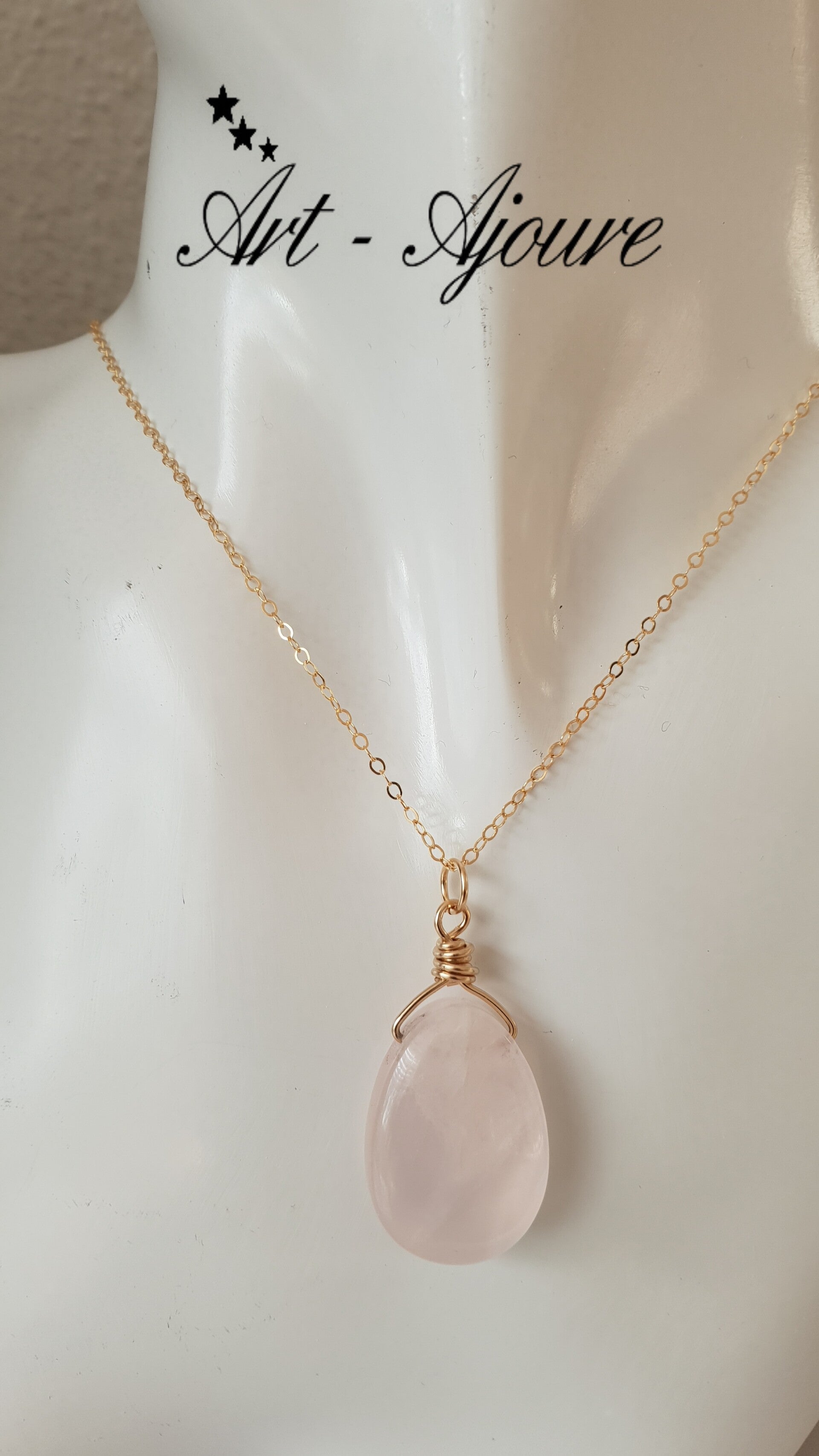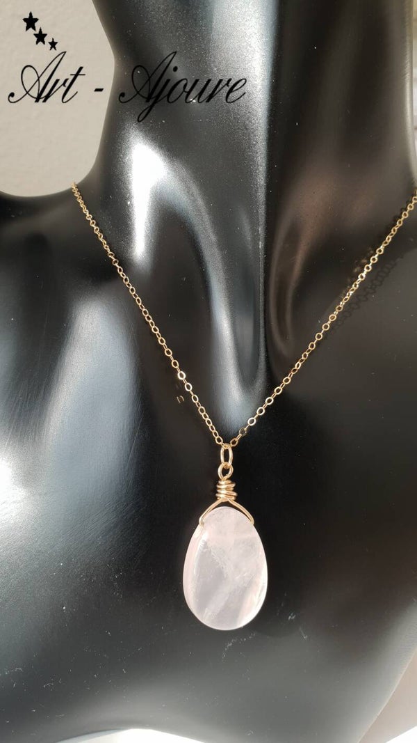Handgemaakte 14K Gold fill hanger van Art-Ajoure met een Rozenkwarts edelsteen.