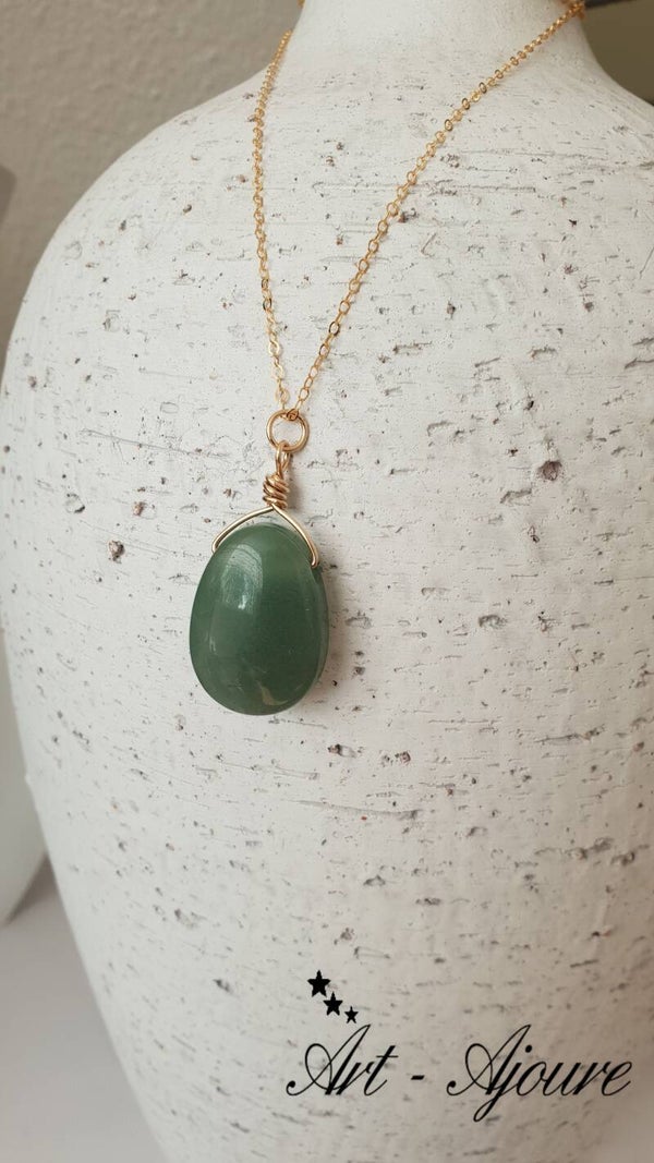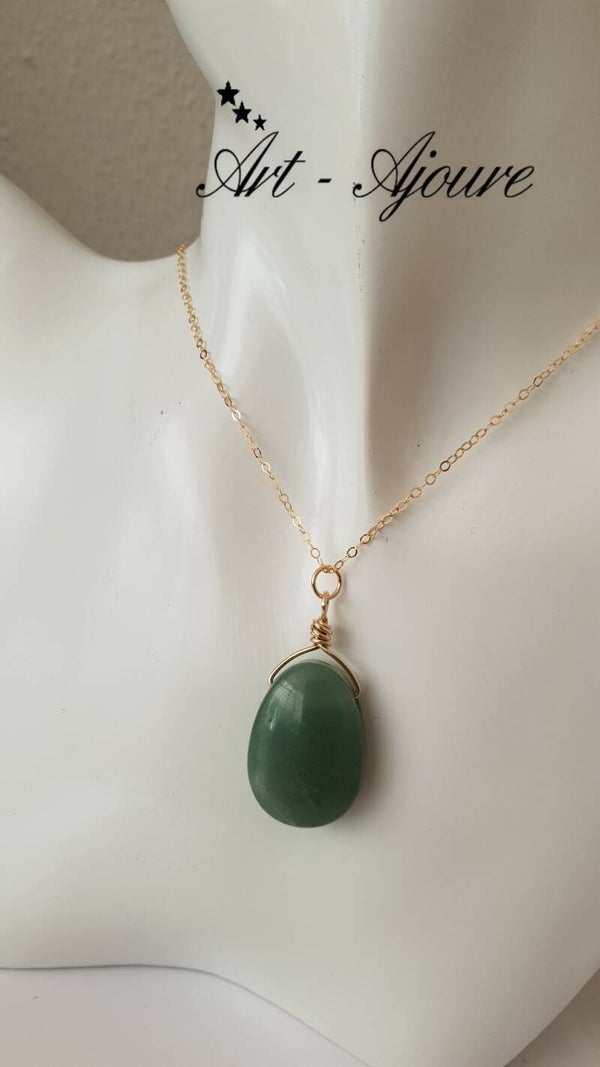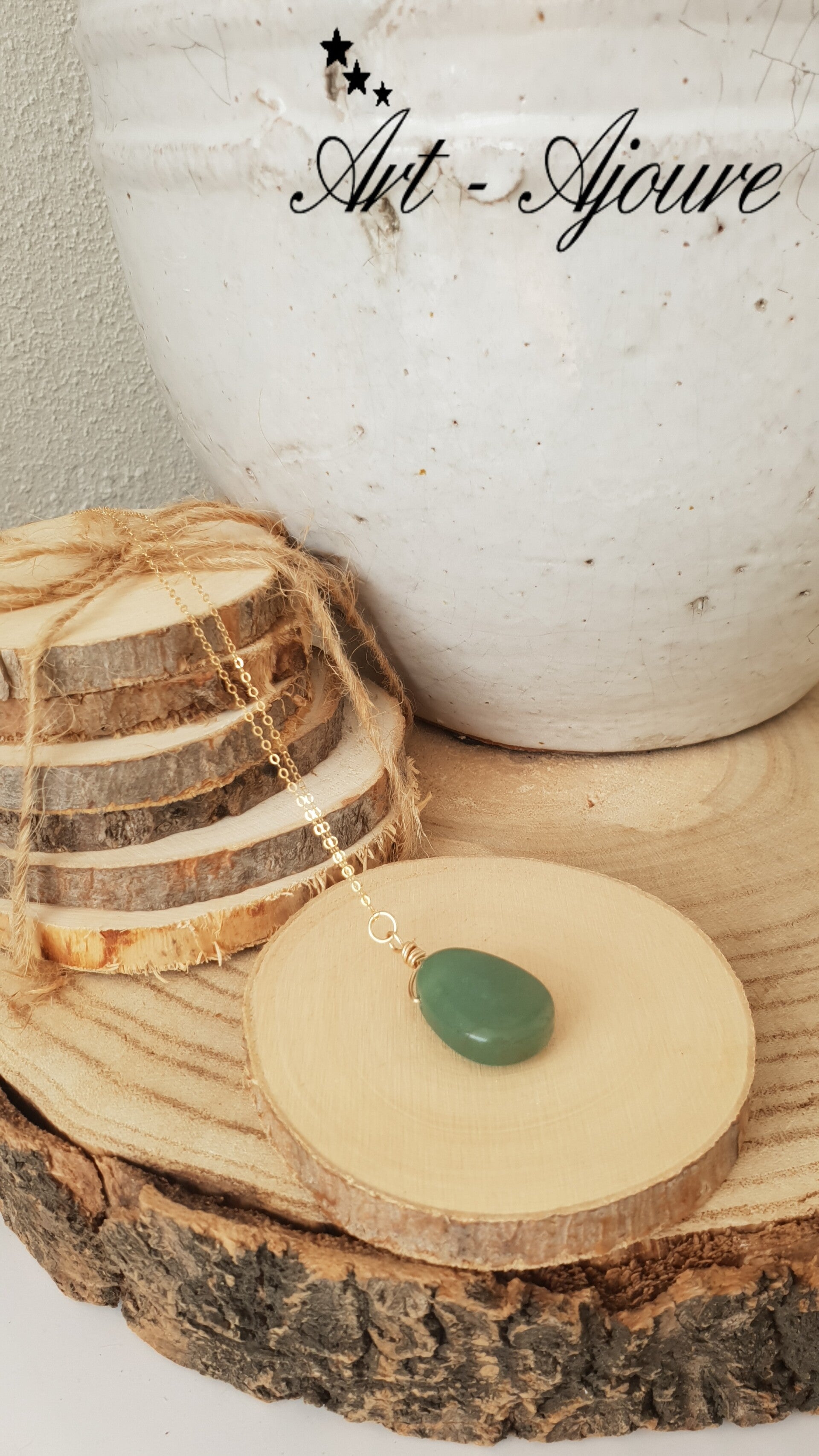 De hanger bestaat uit 1 Aventurijn edelsteen bevestigd met echt 14k goud Gold filled draad.
