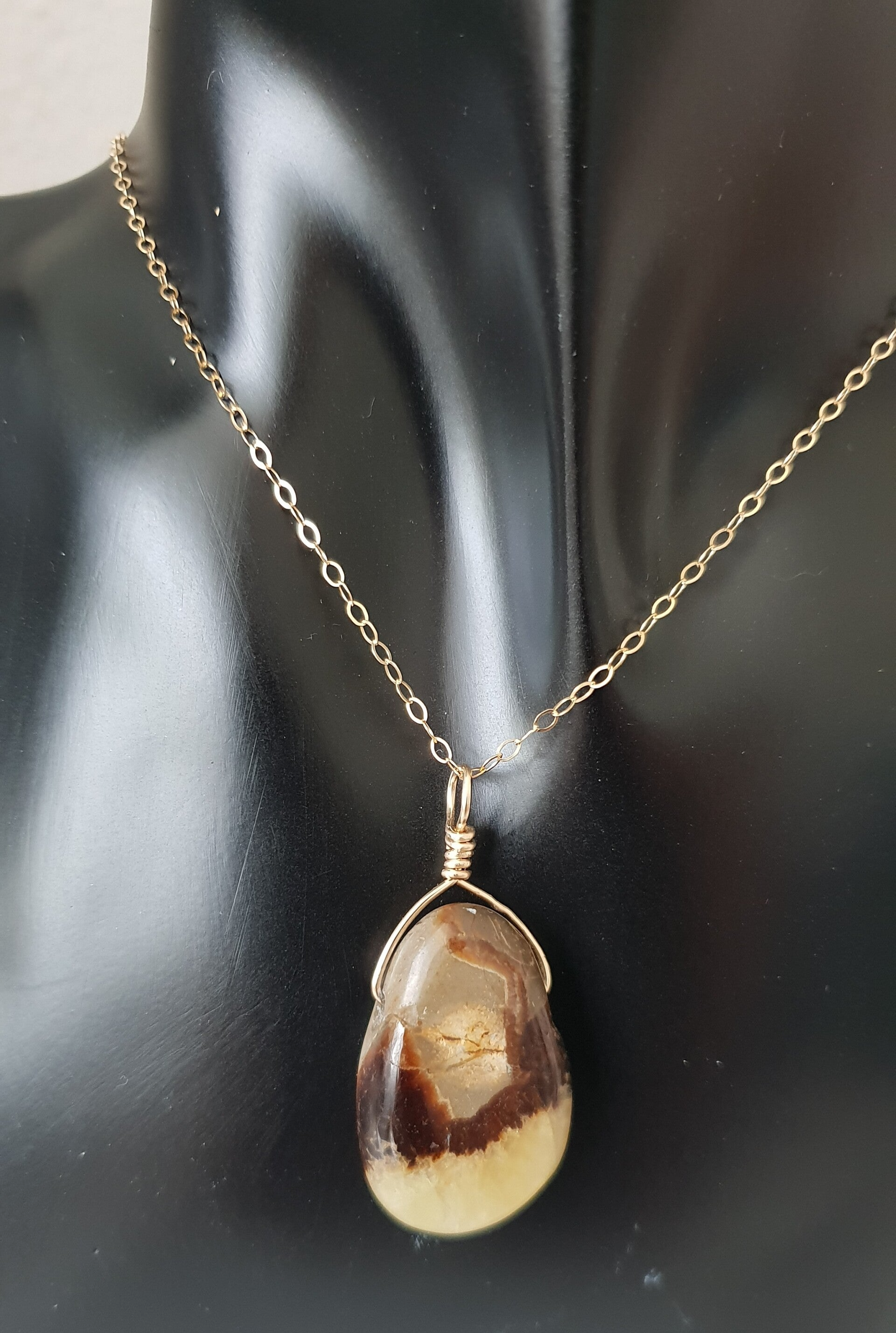 Handgemaakte hanger door Art-Ajoure met een mooie druppel van Septarie steen verbonden met een 14k gold filled sluiting.