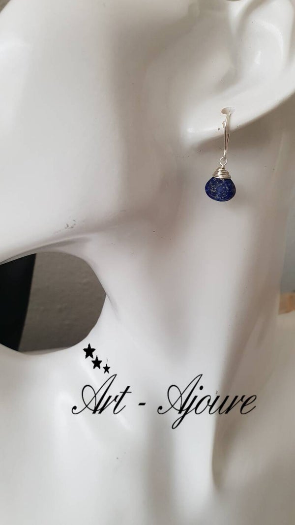 Art-Ajoure 925 Sterling zilver oorbellen met naturel Lapis lazuli.