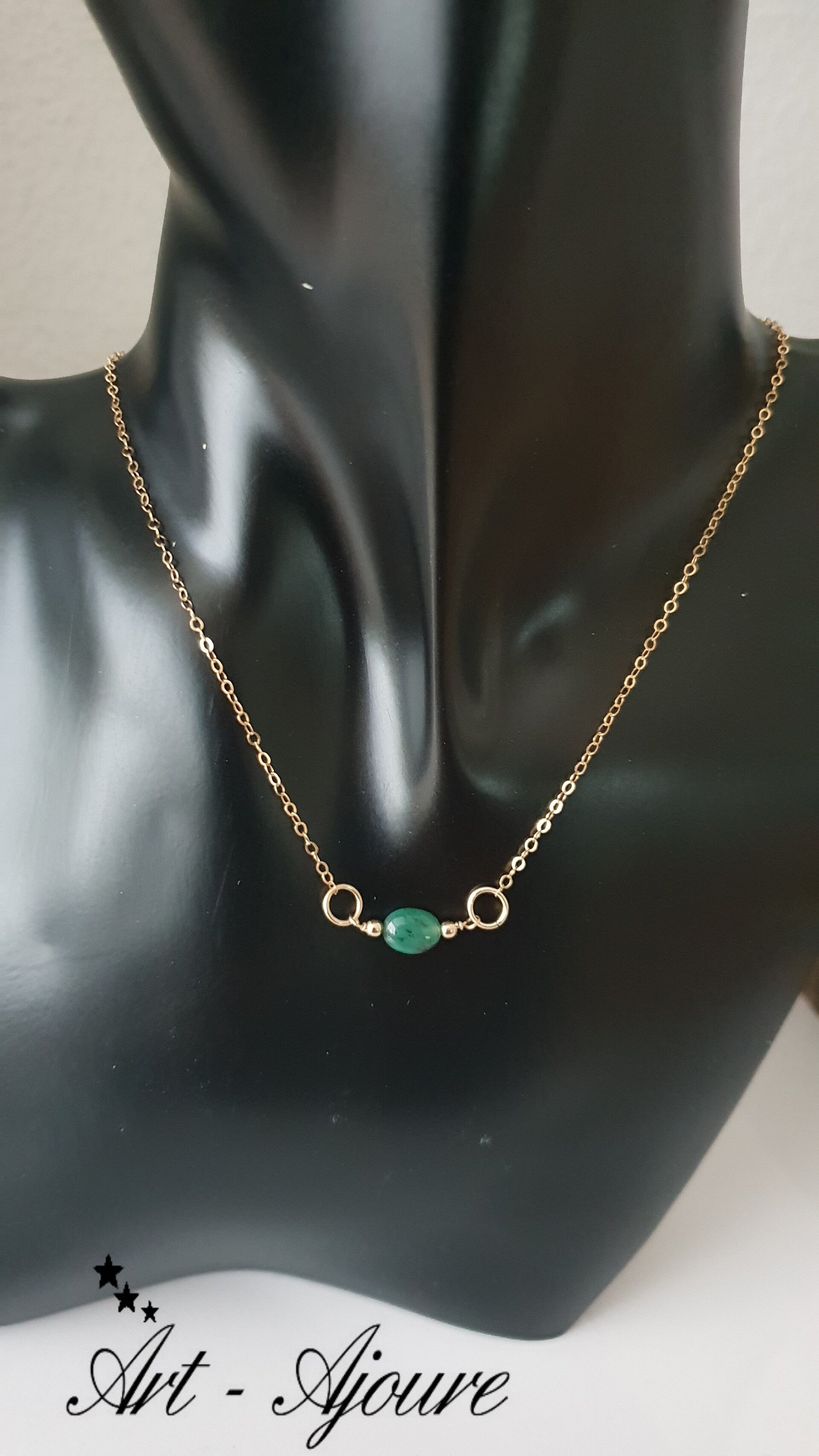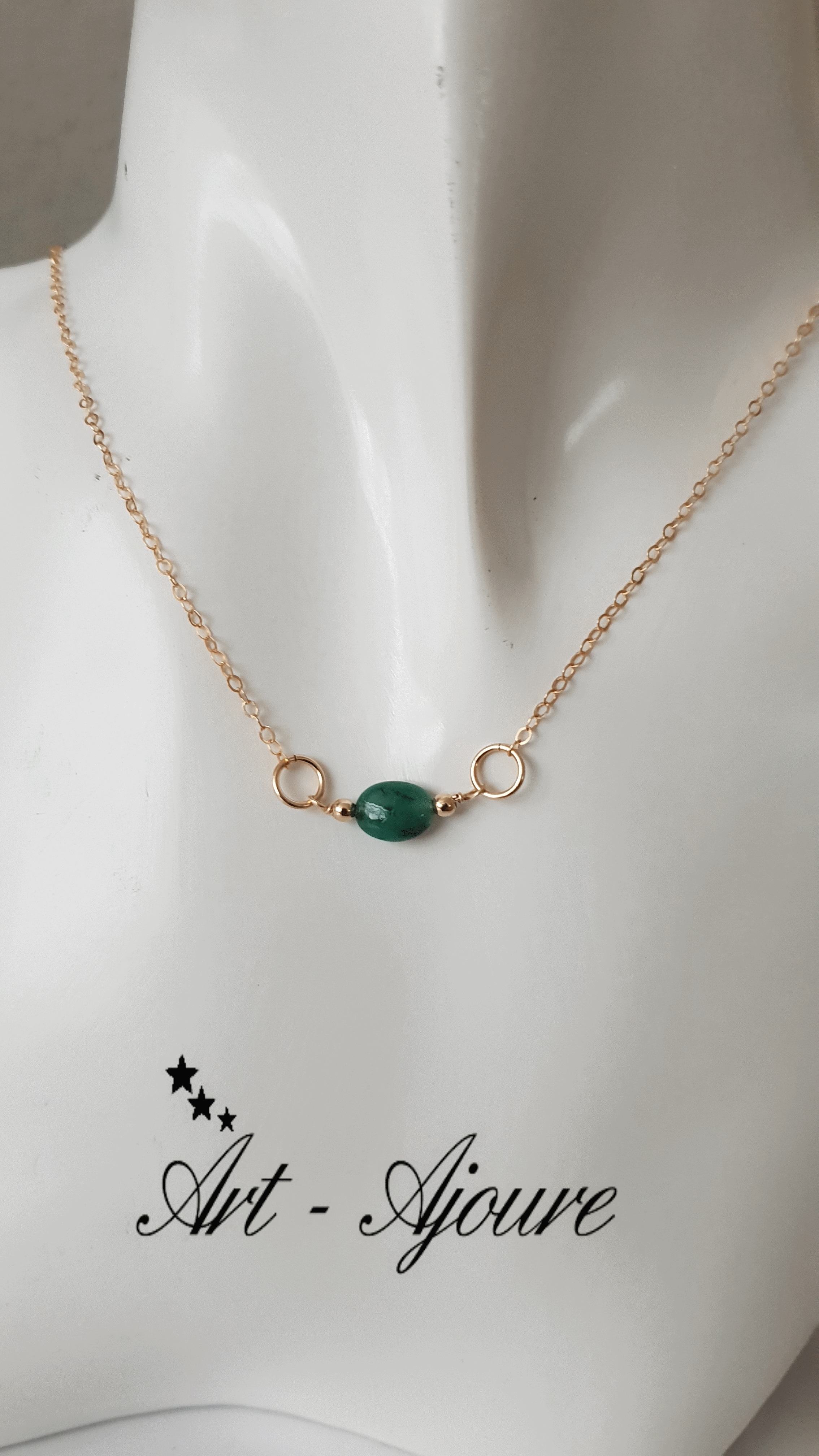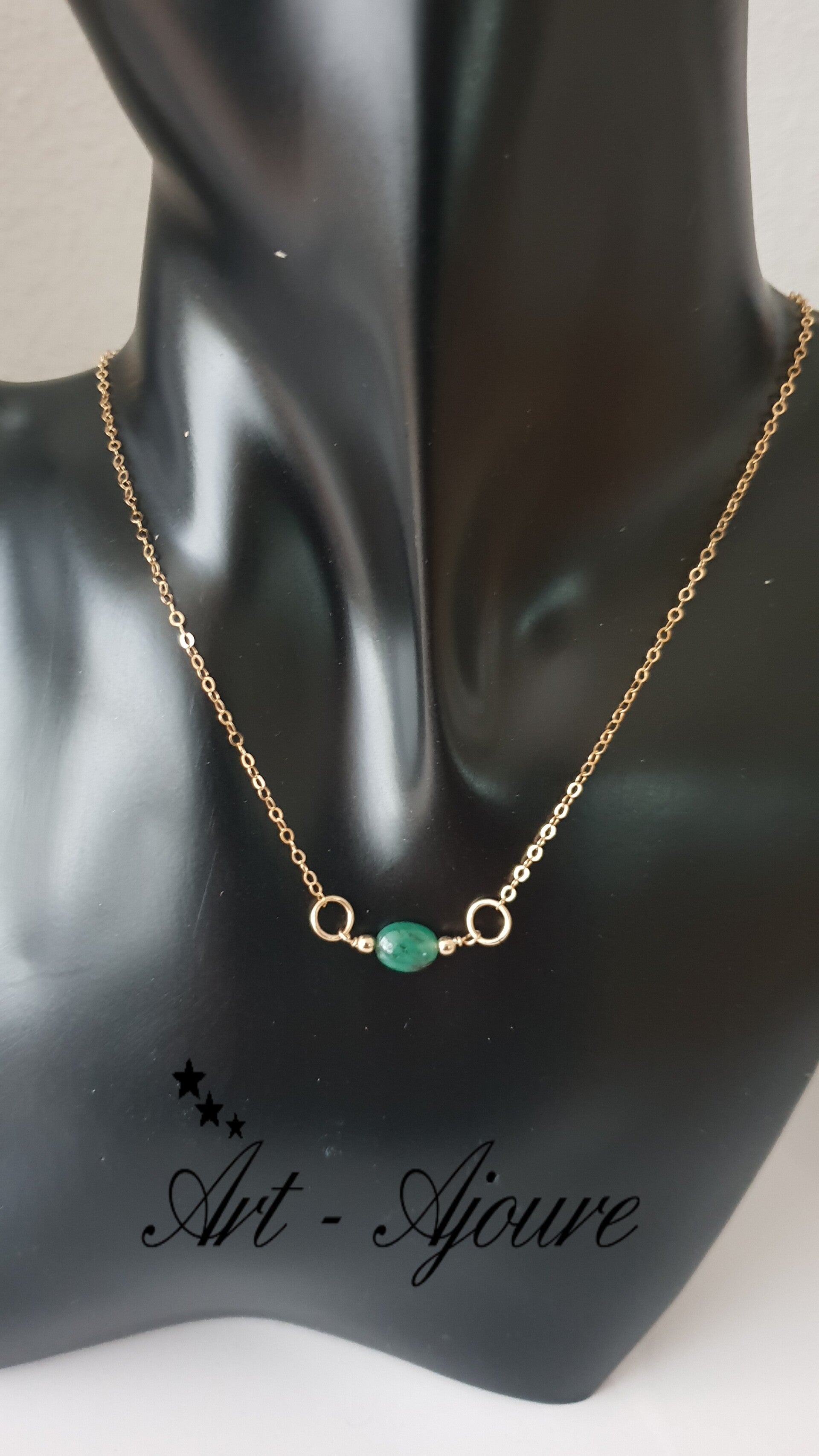 Art-Ajoure 14k Gold fill halsketting met Smaragd.