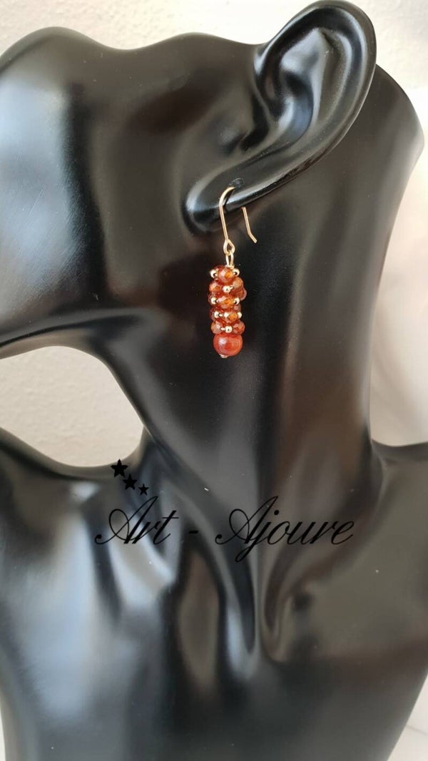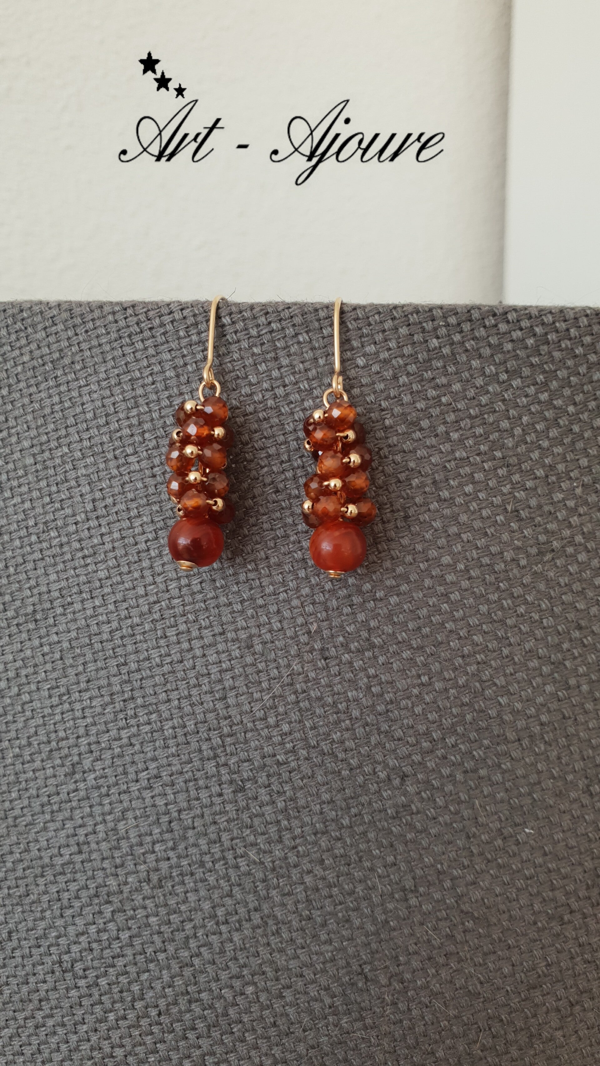 Handgemaakte Art-Ajoure 14k Goldfill oorbellen met Carneool en Hessoniet Granaat edelsteentjes.