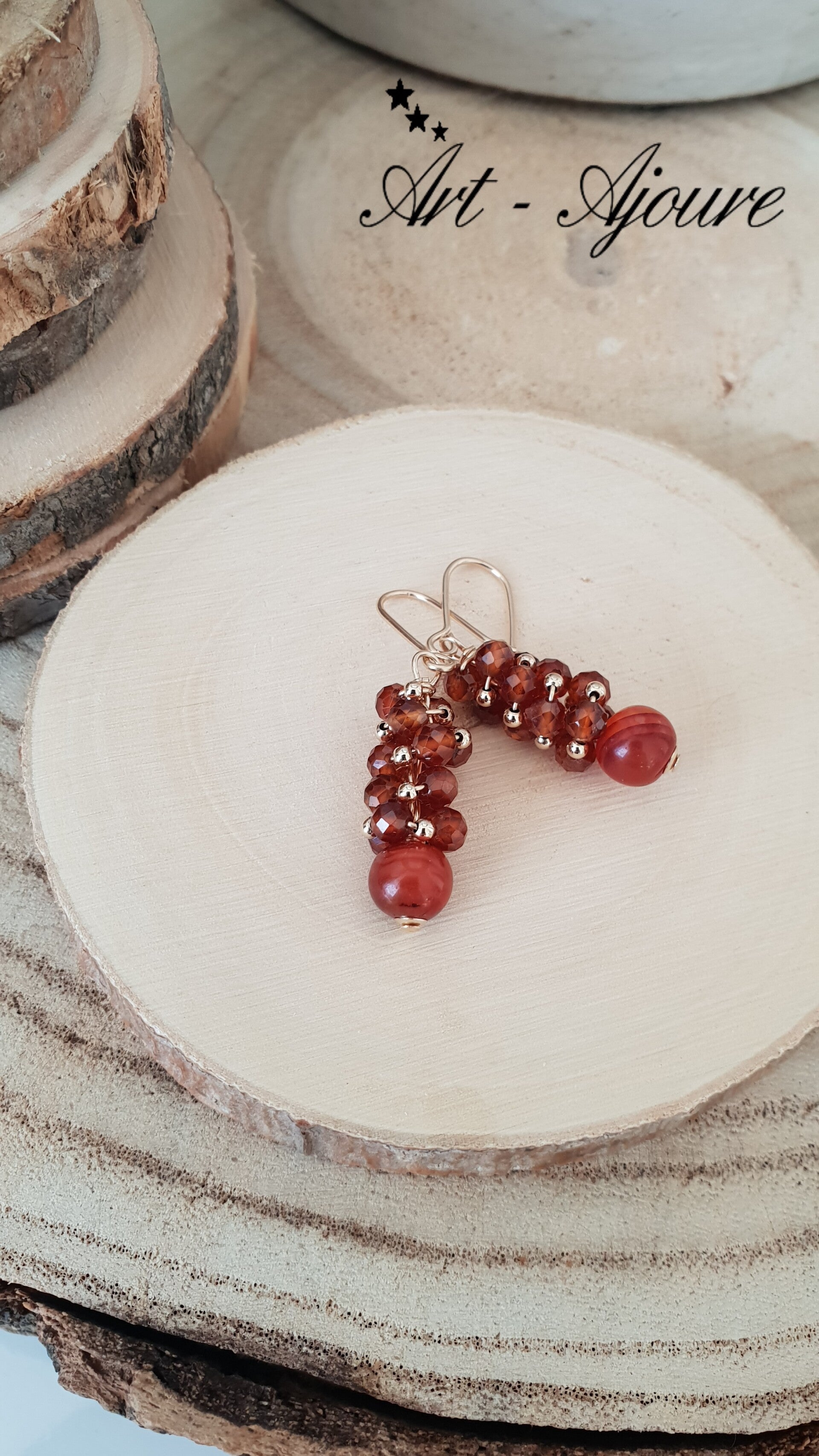 Art-Ajoure 14k Gold fill oorbellen met Carneool en Hessoniet Granaat