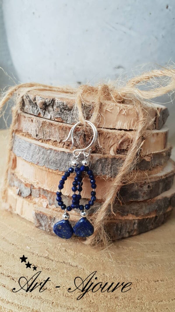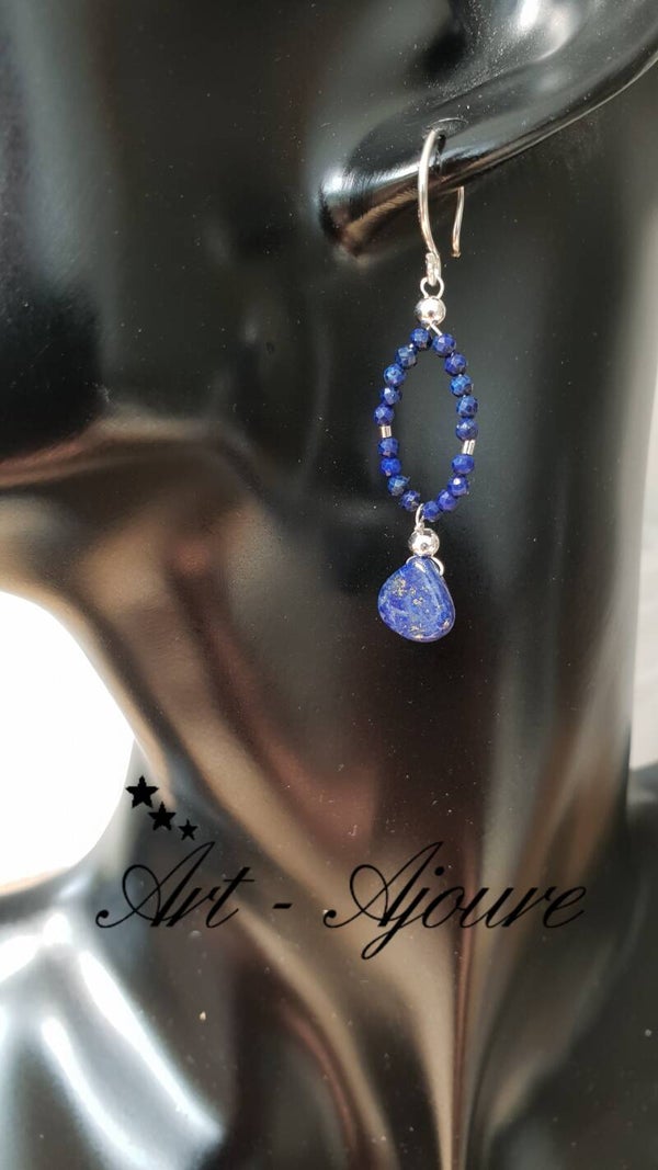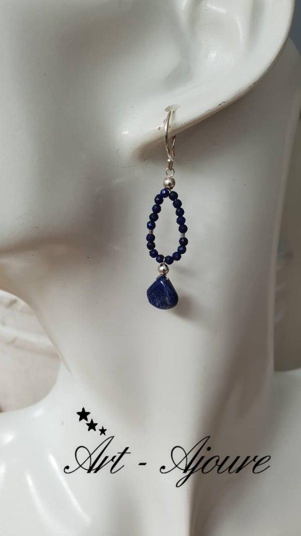Art-Ajoure 925 Sterling zilver oorbellen met naturel Lapis Lazuli.