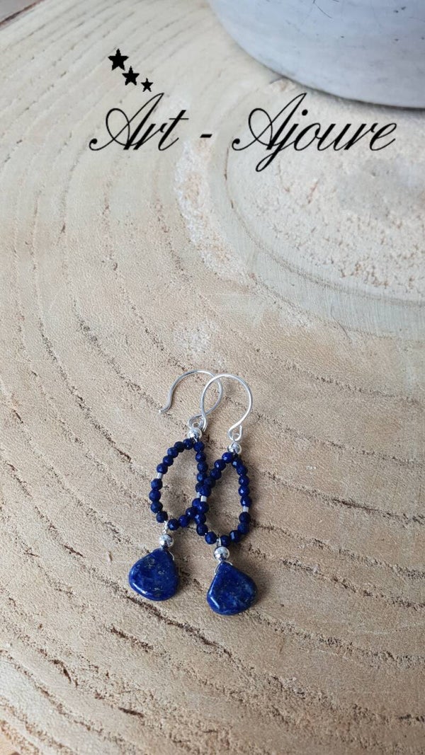 Hand gemaakte Art-Ajoure 925 Sterling zilver oorbellen met naturel Lapis Lazuli edelstenen.