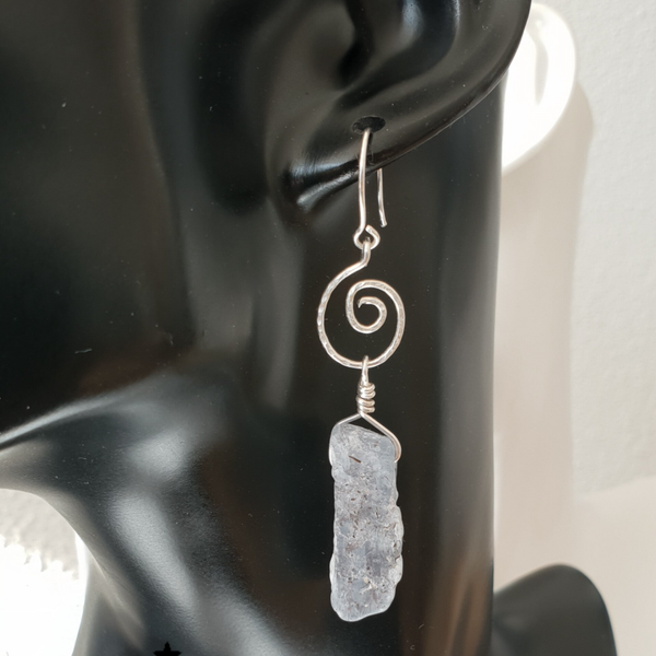 Handgemaakte Art-Ajoure 925 Sterling zilver oorbellen met pure Kyaniet edelstenen.