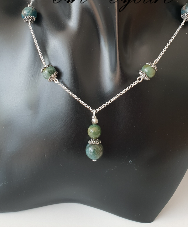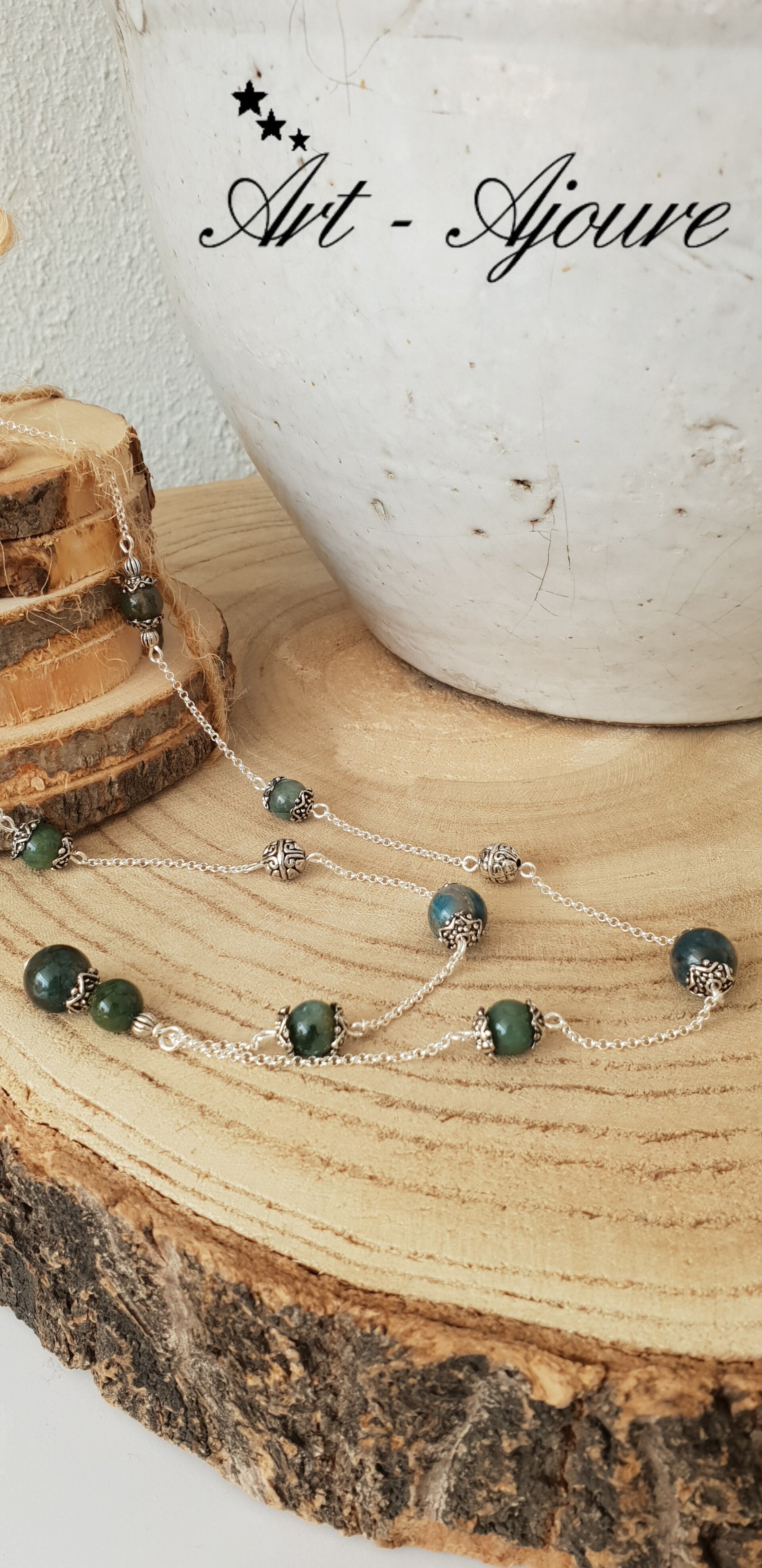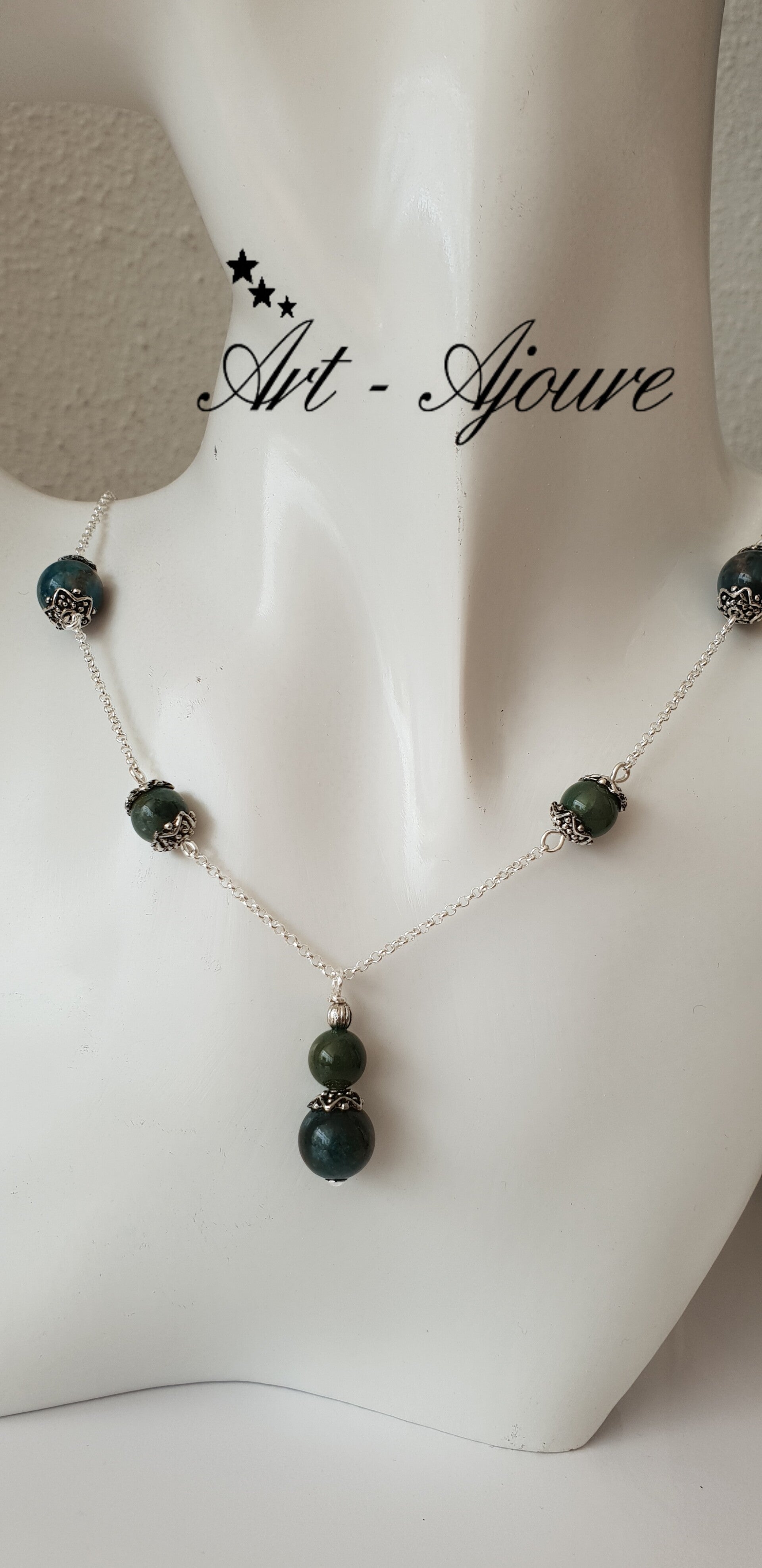 Art-Ajoure 925 Sterling zilver halsketting met Apatiet en Mosagaat.