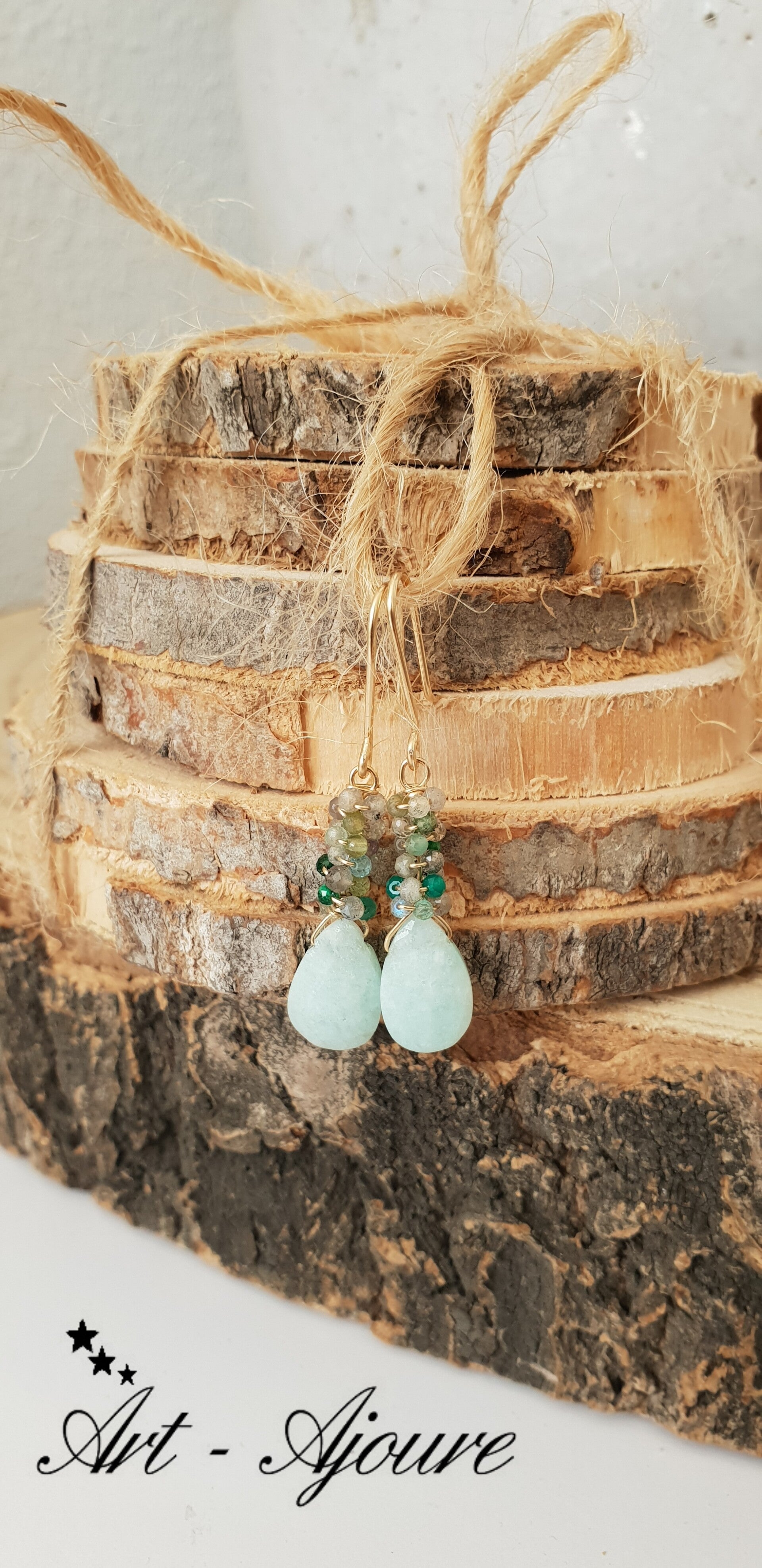 Handgemaakte Art-Ajoure 14k Goldfill oorbellen met Amazoniet en Onyx, Labradoriet, Avanturijn,Bergkristal,Tsavoriet,Pretiet. edelsteentjes.