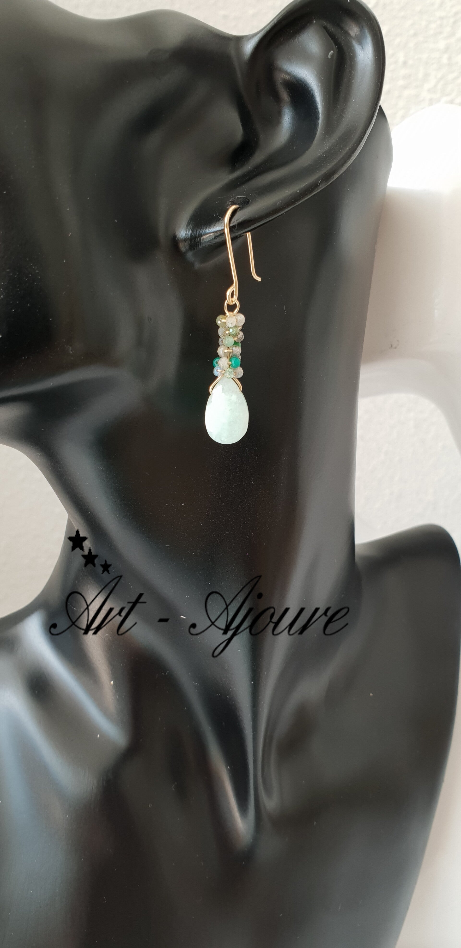 Art-Ajoure 14k Gold fill oorbellen met Amazoniet en Onyx, Labradoriet, Avanturijn,Bergkristal,Tsavoriet,Pretiet.