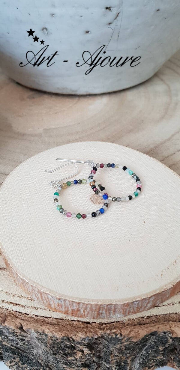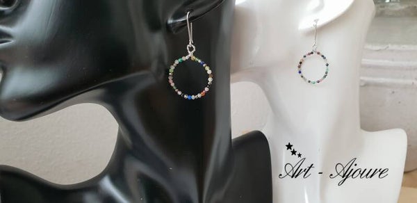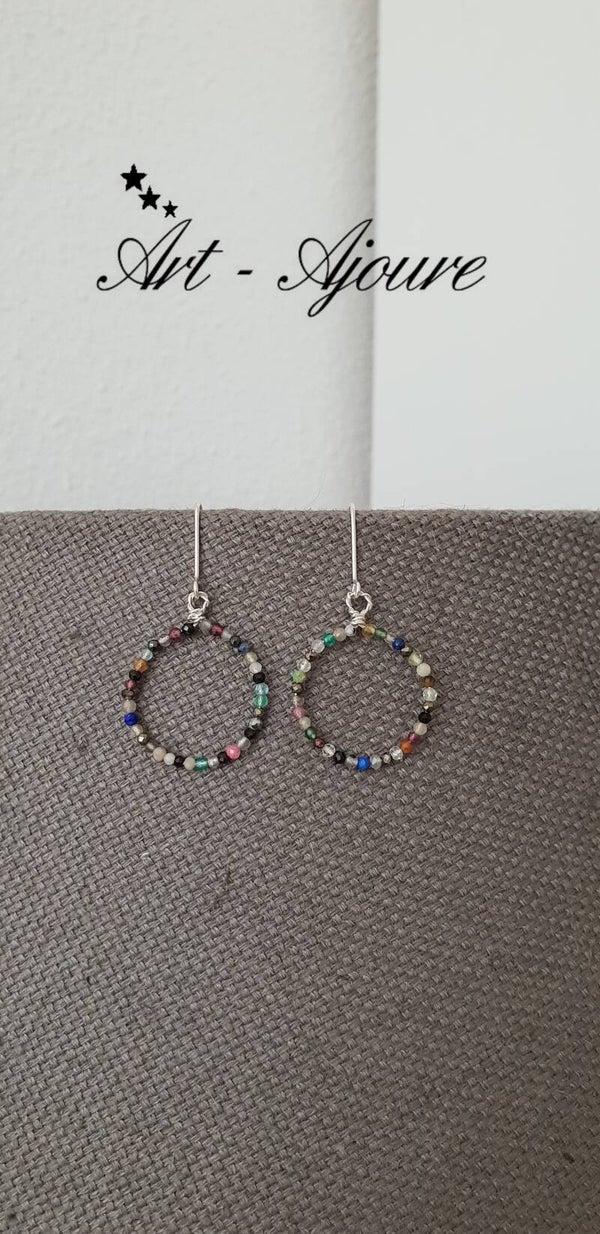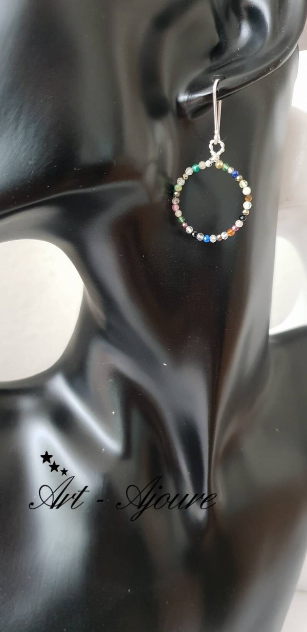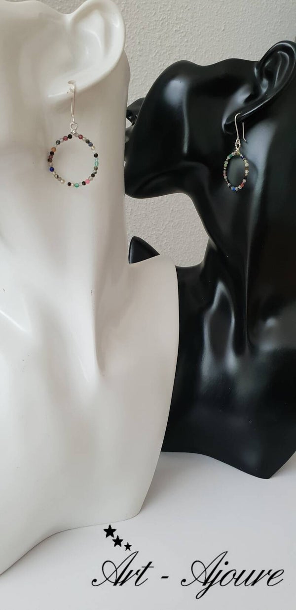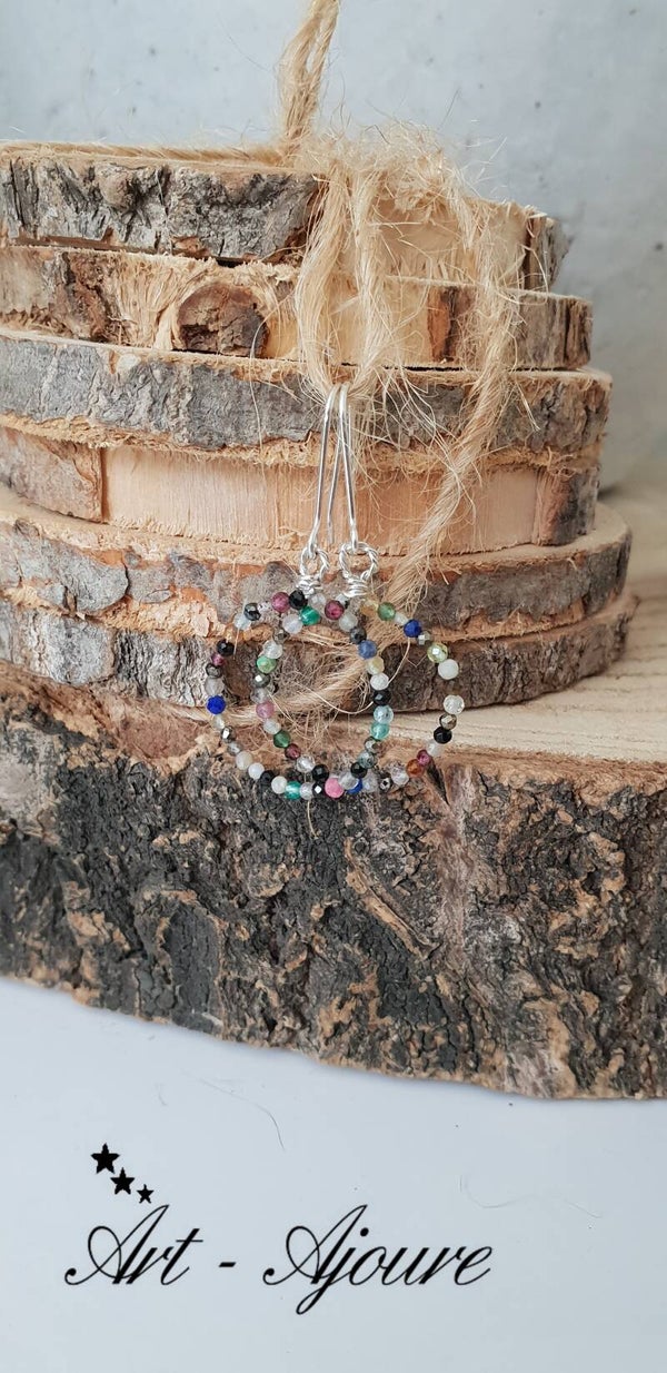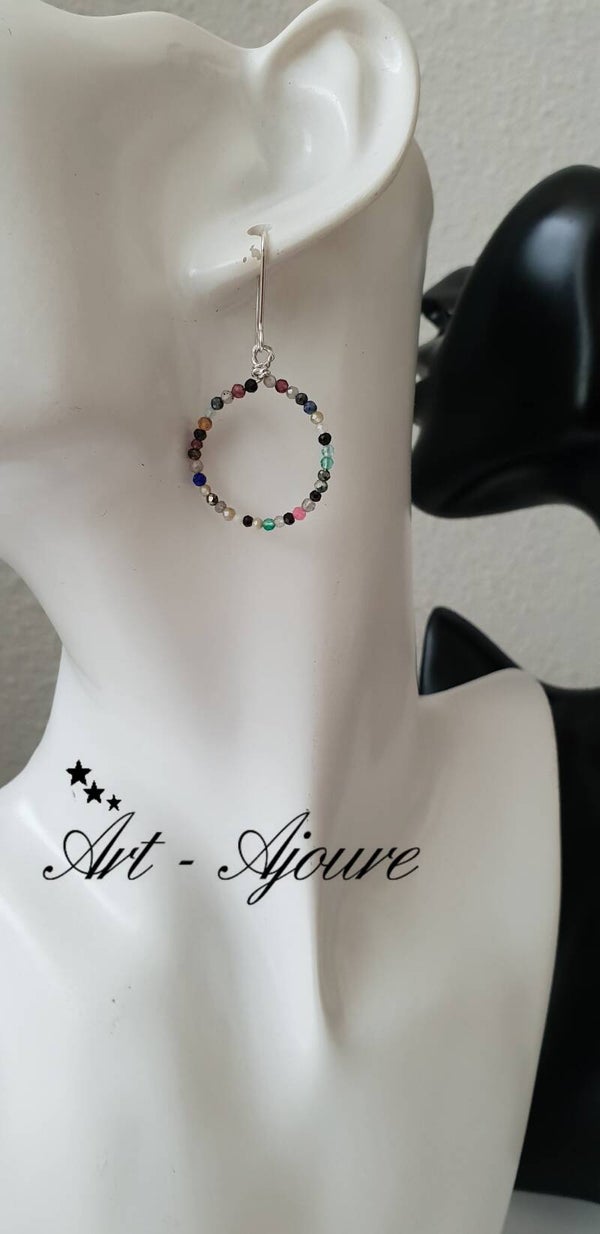 Handgemaakte 925 Sterling zilver oorbellen door Art-Ajoure met heel mooie multi edelstenen. Deze oorbellen met een totale lengte van 4,5 cm met mooie micro facetgeslepen multi edelstenen. De steentjes zijn (Rokkwarts,Rozenkwarts,Labradoriet,Lapis Lazuli,Maansteen,Granaat,Piriet,Pretiet,Uitelkwarts,Zonnsteen,Amethyst,Onyx,Spinel,Aqumarijn,Toermalijn etc) mooie en goed afgesleepen waardoor deze heel mooie glinsteren.