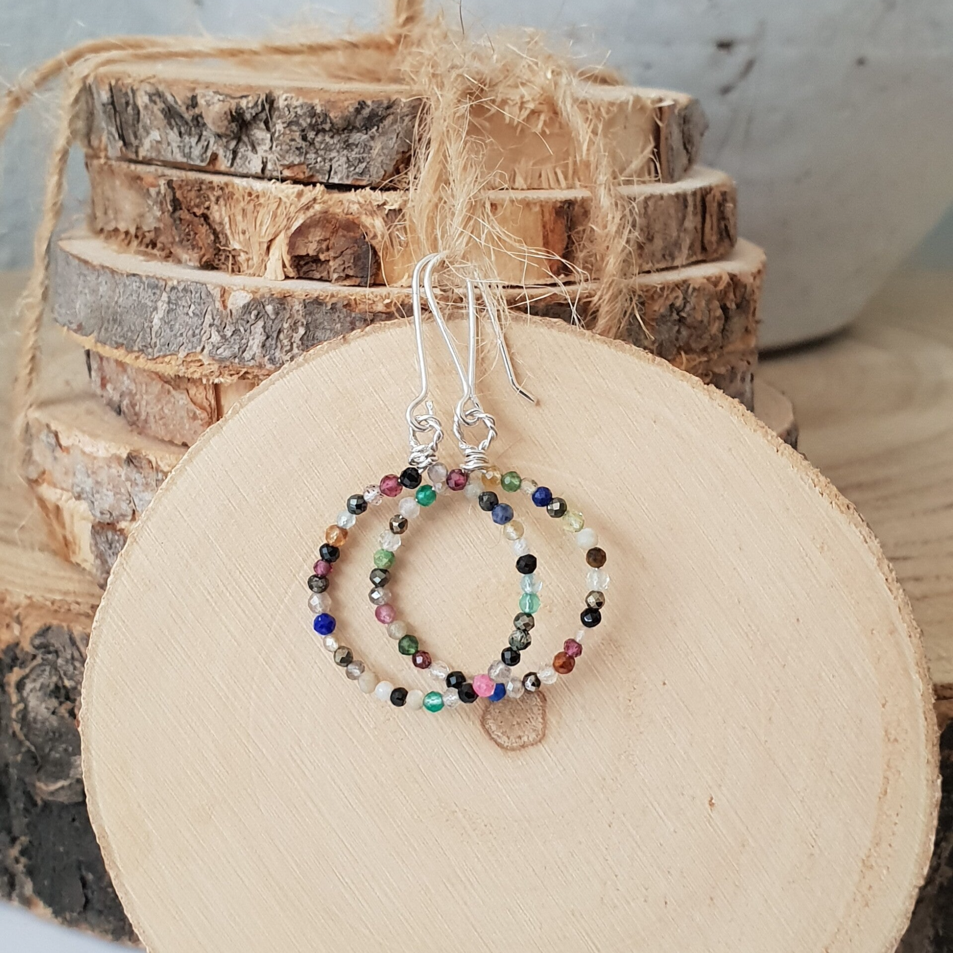 Art-Ajoure Sterling zilver oorbellen met multiedelstenen.