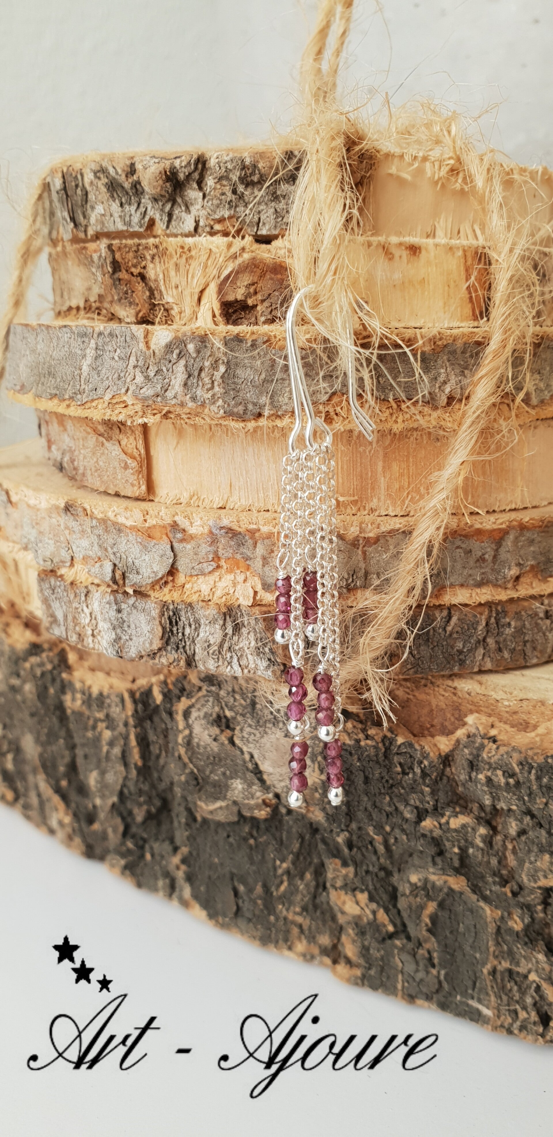 Hand gemaakte Art-Ajoure 925 Sterling zilver oorbellen met Rhodoliet. Heel mooie en zachtaardig oorbellen.