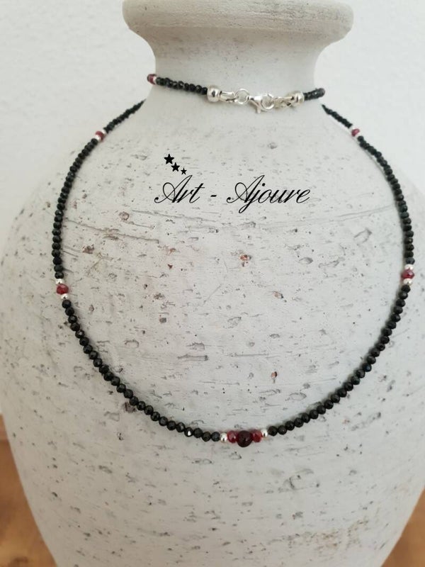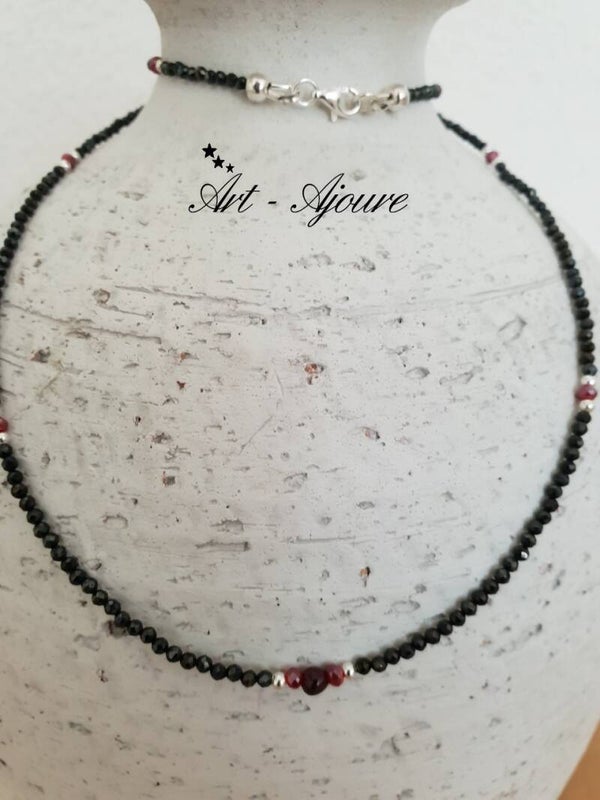 Een met de hand gemaakte 925 Sterling zilver halsketting met Spinel en Granaat edelstenen.