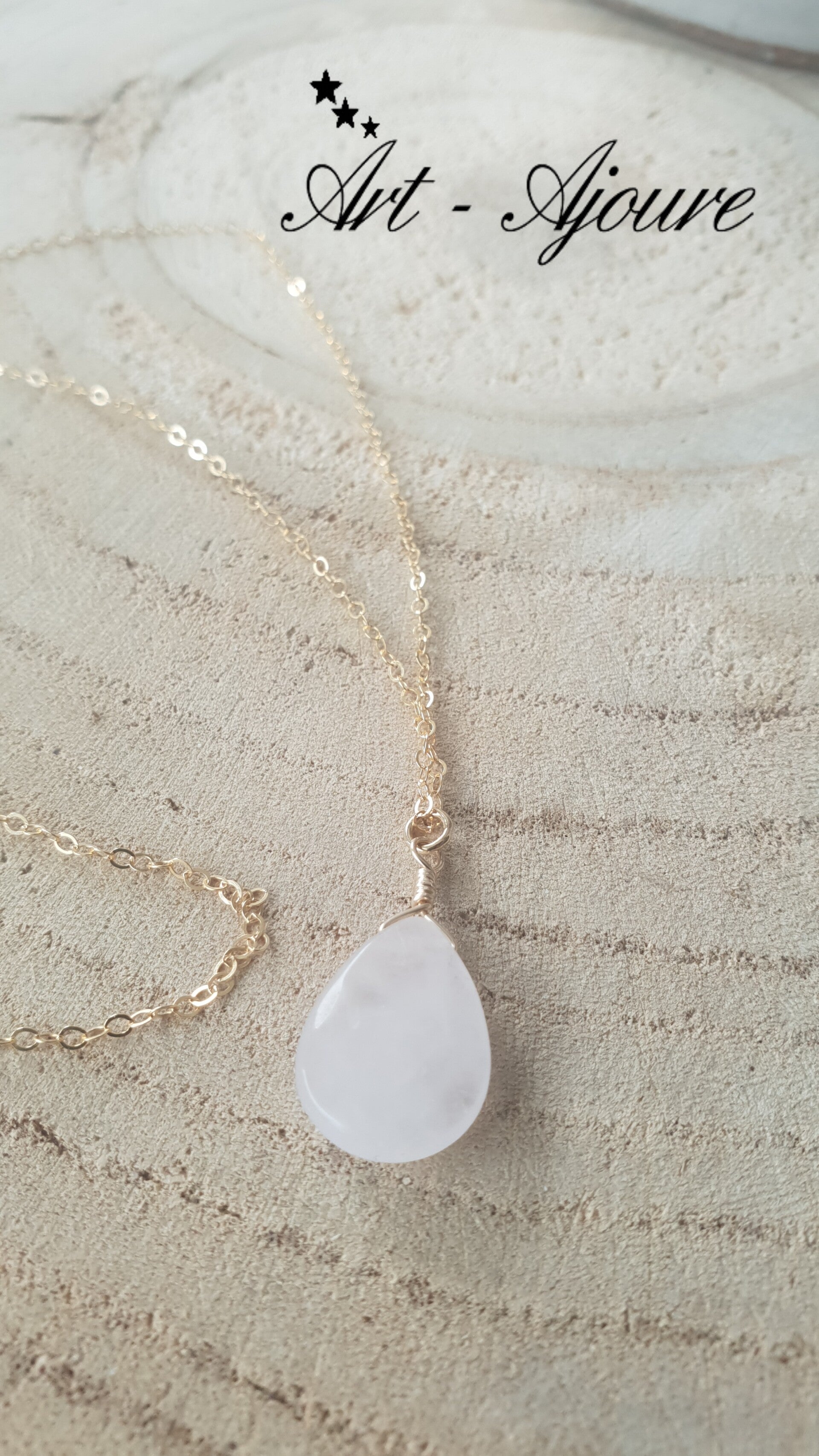 De halsketting en hanger zijn van 14k gold filled gemaakt met facetgeslepen Rozenkwarts druppel.